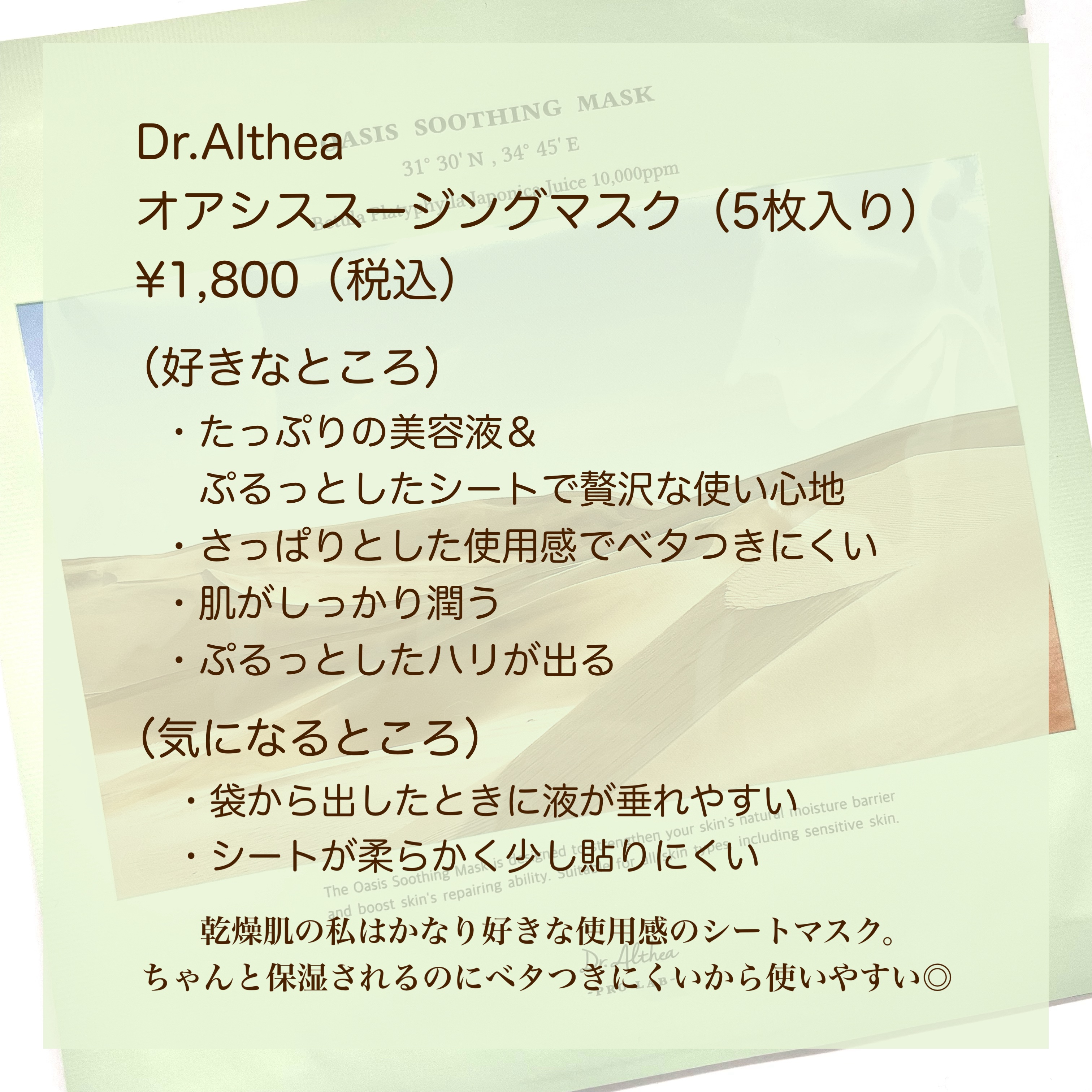 Dr.Althea オアシス スージング マスク | 1,500円 |