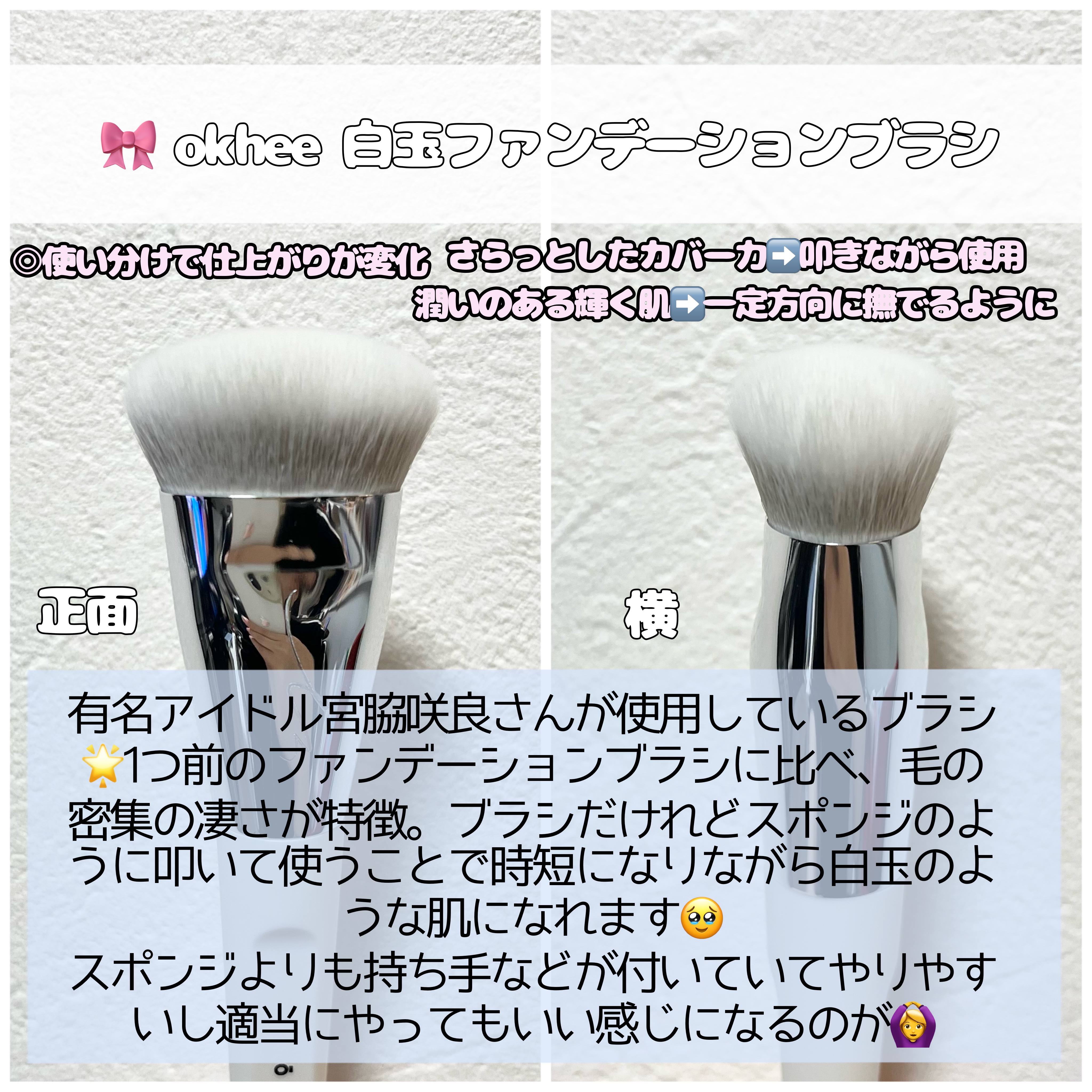 okheeブラシはIVE ウォニョン、IU、BABYMONSTERなどの韓国アイドルのメイクを担当しているソオク先生のノウハウで作られたブラシ✨ BY MAENGブラシはBLACKPINK、ヘリなどの韓国アイドルのメイクを担当していたメン先生の経験から誕生したブラシ💎 okhee白玉ファンデーションブラシ PIV01は薄く均一に伸ばせるのでナチュラルに仕上げたいときに🙆♀️