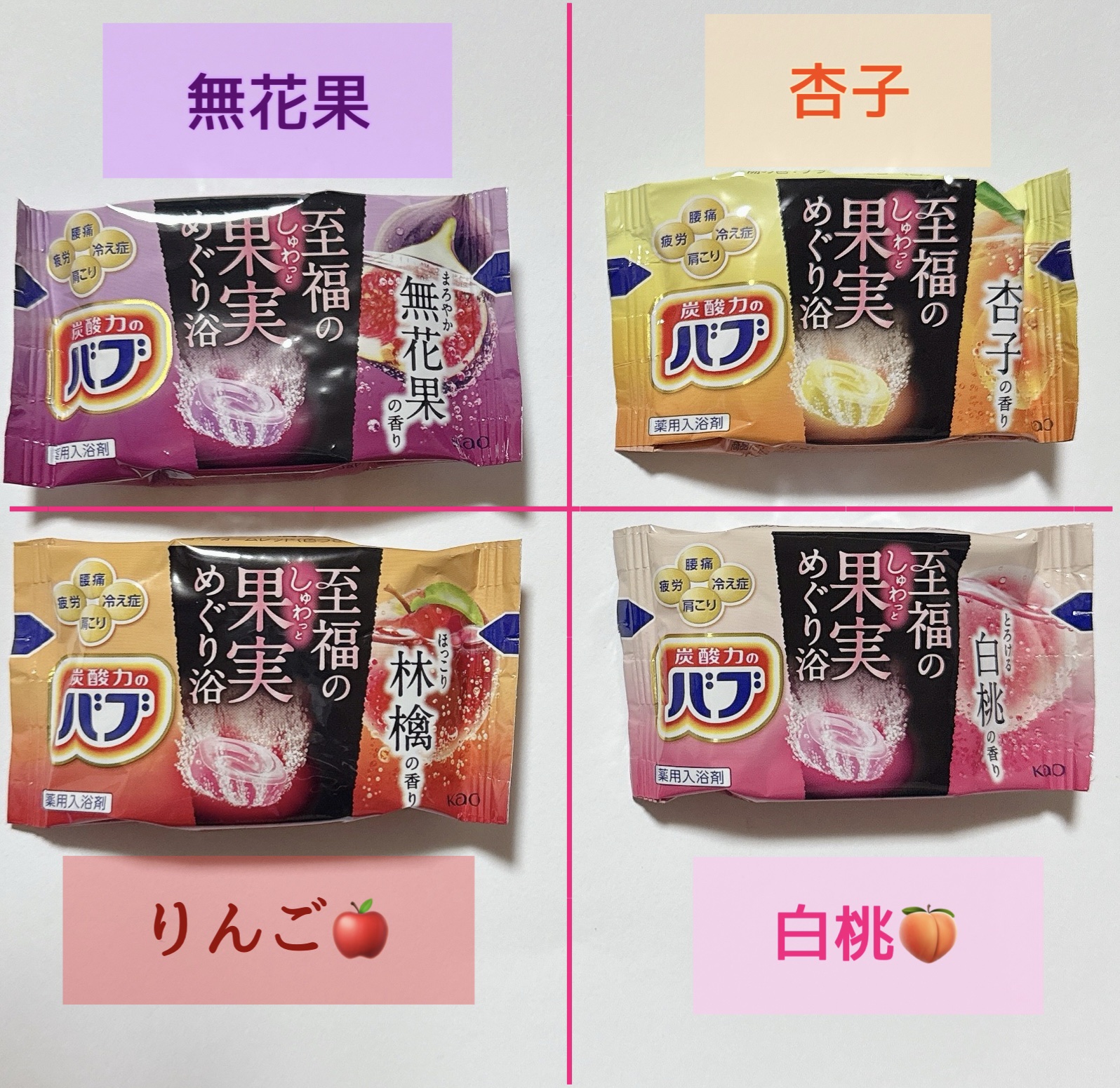 たまには違うの使おうかなって、購入🤭めっちゃいい香りでお風呂タイムが楽しくなるよ🥰魅せ肌のつるすべケアに✨【使った商品】バブ至福の果実めぐり浴【商品の特徴】果汁あふれる新鮮な果実から、4種の香りを厳選しました。・まろやか無花果の香り・ほっこり...