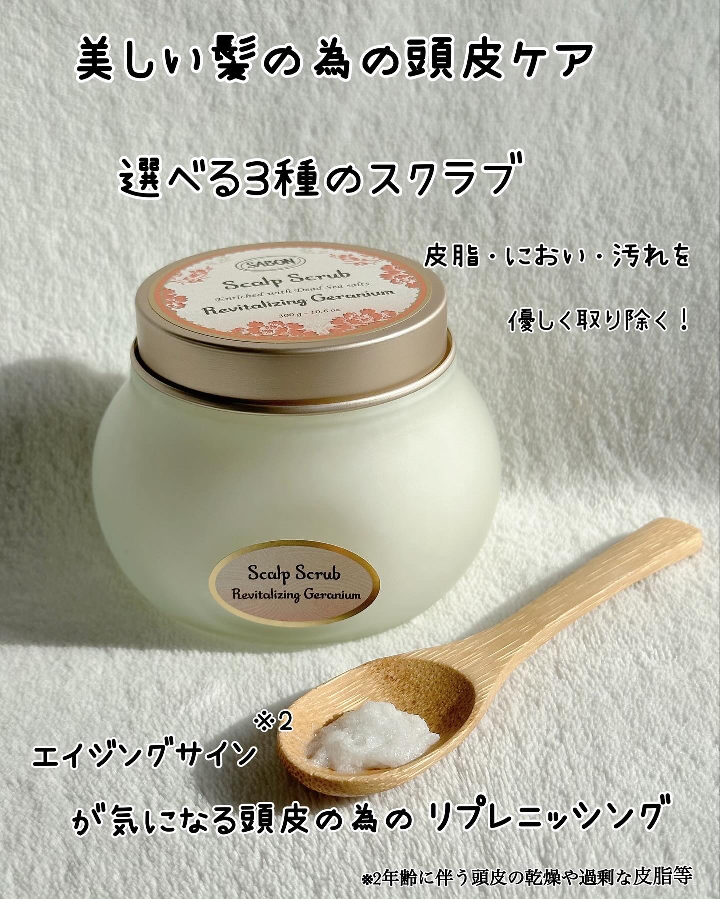 SABON🌿✨ヘッドスクラブリプレニッシングゼラニウム300g¥5,500サボンのヘッドスクラブリプレニッシングを初めて使ってみました💆♀️✨香りがとてもよくスクラブもボディと違いザラザラ感も強くなくその後、自宅のシャンプー🧴コンディショナ...