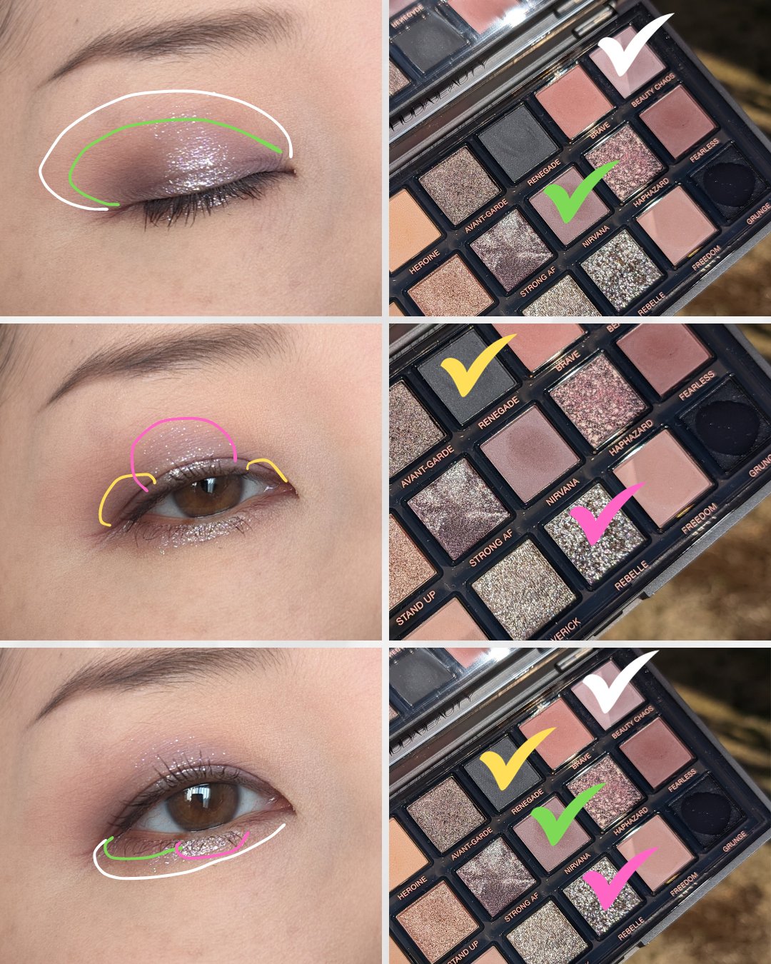 マットの発色をご覧ください。 マットでここまで発色するのって、珍しい。 特にパープル系のマットは、作るのが難しいらしく、ハイブランドでも発色がよくブレンドしやすいマットパープルを作るのに苦労するそう。 ですがこちらのaztkのマットパープルは、一塗りですんごい発色。 しっとりしているわけではないのですが、しっかり密着してくれる感じもします。 逆にパール系は少し発色優しめかな?と思いますが、ニュアンス的に使う分には問題なし。 ラメはギラギラのラメではなくチラチララメで、とっても上品。 いろんなシャドウと組み合わせて無限大にアイメイクが楽しめそうです。