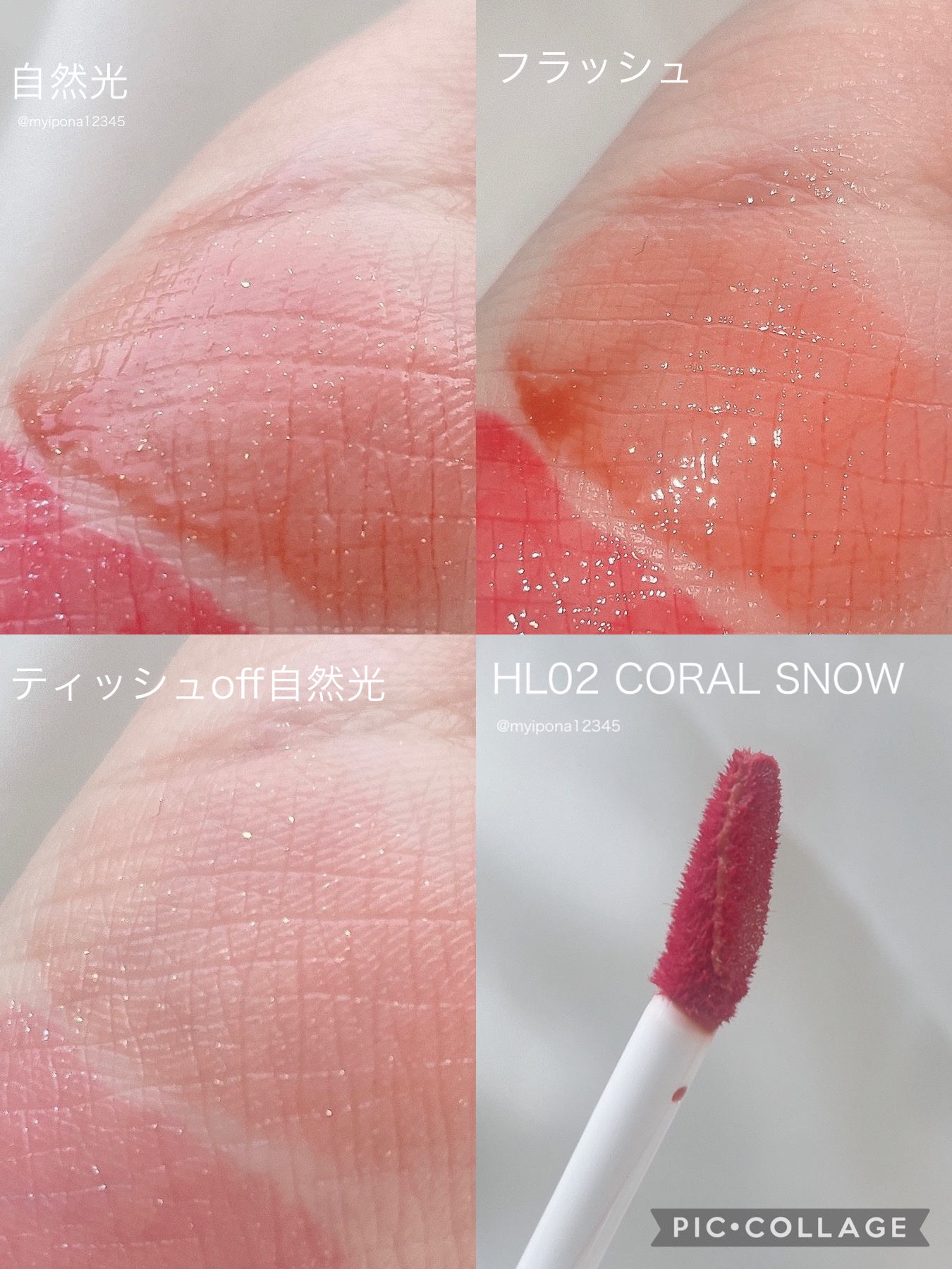 透け感のあるちゅるん仕上がりで縦ジワが気にならなくなるのも◎ ティッシュオフしても色味が残ってるし塗り直しもしやすい🌷 限定カラーのパケが可愛いしホリデー限定のHLはラメ入りだよ.ᐟ.ᐟ