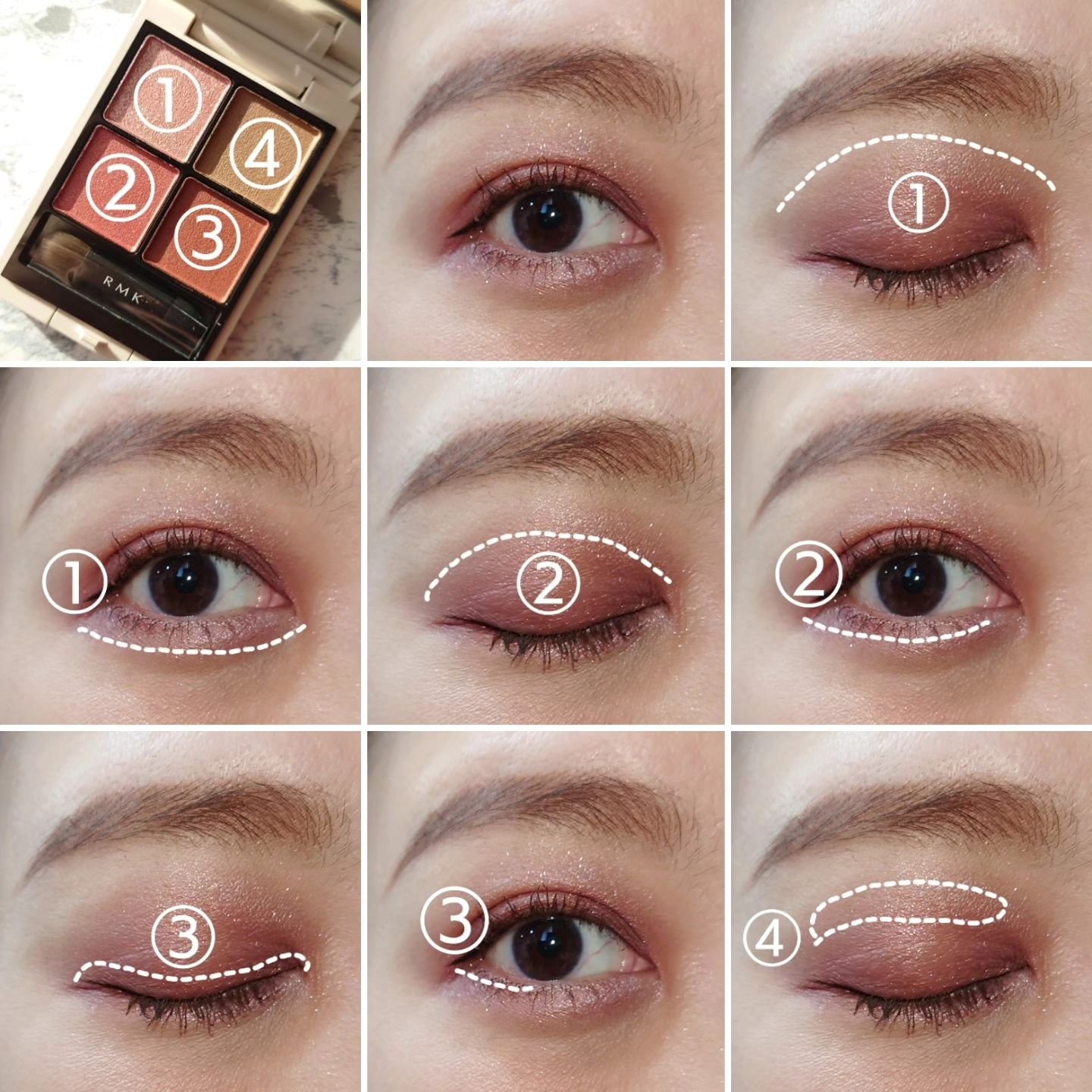 #シンクロマティックアイシャドウパレット ∟ EX-03 スイート テンパード EX-04 ジェントル EX-06 ヴァイブラント 05 ディライトフル @rmkofficial #rmk #今日のメイク #メイクレシピ #コスメ好きな人と繋がりたい