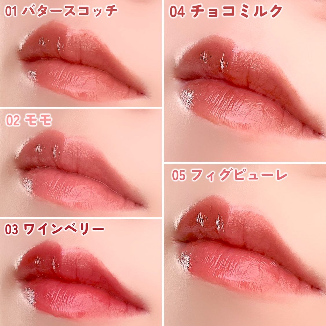 - <01 バタースコッチ> 水添ポリイソブテン、トリエチルヘキサノイン、ビスジグリセリルポリアシルアジペート-2、ヒドロキシステアリン酸エチルヘキシル、ワセリン、リンゴ酸ジイソステアリル、マイクロクリスタリンワックス、合成ワックス、シリカ、セスキイソステアリン酸ソルビタン、メントキシプロパンジオール、キャンデリラロウ、バニリルブチル、トコフェロール、クエン酸、クエン酸Na、ヒアルロン酸Na、アルガニアスピノサ核油、ハチミツ、シア脂、水、BG、加水分解コラーゲン、酸化鉄、酸化チタン、黄4、黄5、赤202、橙201、テトライソステアリン酸ポリグリセリル-2、青1、水酸化Al、赤223 <02 モモ> 水添ポリイソブテン、トリエチルヘキサノイン、ビスジグリセリルポリアシルアジペート-2、ヒドロキシステアリン酸エチルヘキシル、ワセリン、リンゴ酸ジイソステアリル、マイクロクリスタリンワックス、合成ワックス、シリカ、セスキイソステアリン酸ソルビタン、メントキシプロパンジオール、キャンデリラロウ、バニリルブチル、トコフェロール、クエン酸、クエン酸Na、ヒアルロン酸Na、アルガニアスピノサ核油、ハチミツ、シア脂、水、BG、加水分解コラーゲン、酸化チタン、黄4、黄5、赤202、酸化鉄、橙201、水酸化Al、テトライソステアリン酸ポリグリセリル-2 <03 ワインベリー> 水添ポリイソブテン、トリエチルヘキサノイン、ビスジグリセリルポリアシルアジペート-2、ヒドロキシステアリン酸エチルヘキシル、ワセリン、リンゴ酸ジイソステアリル、マイクロクリスタリンワックス、合成ワックス、シリカ、セスキイソステアリン酸ソルビタン、メントキシプロパンジオール、キャンデリラロウ、バニリルブチル、トコフェロール、クエン酸、クエン酸Na、ヒアルロン酸Na、アルガニアスピノサ核油、ハチミツ、シア脂、水、BG、加水分解コラーゲン、黄4、赤202、酸化チタン、酸化鉄、橙201、黄5、テトライソステアリン酸ポリグリセリル-2、赤223、水酸化Al、青1 <05 フィグピューレ> 水添ポリイソブテン、トリエチルヘキサノイン、ビスジグリセリルポリアシルアジペート-2、ヒドロキシステアリン酸エチルヘキシル、ワセリン、リンゴ酸ジイソステアリル、マイクロクリスタリンワックス、合成ワックス、シリカ、セスキイソステアリン酸ソルビタン、メントキシプロパンジオール、キャンデリラロウ、バニリルブチル、トコフェロール、クエン酸、クエン酸Na、ヒアルロン酸Na、アルガニアスピノサ核油、ハチミツ、シア脂、水、BG、加水分解コラーゲン、酸化チタン、黄4、赤202、黄5、酸化鉄、橙201、青1、水酸化Al、テトライソステアリン酸ポリグリセリル-2、赤223 <06 ラズベリーケーキ> 水添ポリイソブテン、トリエチルヘキサノイン、ビスジグリセリルポリアシルアジペート-2、ヒドロキシステアリン酸エチルヘキシル、リンゴ酸ジイソステアリル、ワセリン、マイクロクリスタリンワックス、合成ワックス、シリカ、セスキイソステアリン酸ソルビタン、メントキシプロパンジオール、キャンデリラロウ、バニリルブチル、トコフェロール、クエン酸、クエン酸Na、ヒアルロン酸Na、アルガニアスピノサ核油、ハチミツ、シア脂、水、BG、加水分解コラーゲン、酸化チタン、酸化鉄、赤202、橙201、水酸化Al、テトライソステアリン酸ポリグリセリル-2、青1、赤223、黄5 <07 フルーツオレ> 水添ポリイソブテン、トリエチルヘキサノイン、ビスジグリセリルポリアシルアジペート-2、ヒドロキシステアリン酸エチルヘキシル、ワセリン、リンゴ酸ジイソステアリル、マイクロクリスタリンワックス、合成ワックス、シリカ、セスキイソステアリン酸ソルビタン、メントキシプロパンジオール、キャンデリラロウ、バニリルブチル、トコフェロール、クエン酸、クエン酸Na、ヒアルロン酸Na、アルガニアスピノサ核油、ハチミツ、シア脂、水、BG、加水分解コラーゲン、酸化チタン、酸化鉄、黄4、水酸化Al、赤202、橙201、黄5、青1、テトライソステアリン酸ポリグリセリル-2 <04 チョコミルク> 水添ポリイソブテン、トリエチルヘキサノイン、ビスジグリセリルポリアシルアジペート-2、ヒドロキシステアリン酸エチルヘキシル、リンゴ酸ジイソステアリル、ワセリン、マイクロクリスタリンワックス、合成ワックス、シリカ、セスキイソステアリン酸ソルビタン、メントキシプロパンジオール、キャンデリラロウ、バニリルブチル、トコフェロール、クエン酸、クエン酸Na、ヒアルロン酸Na、アルガニアスピノサ核油、ハチミツ、シア脂、水、BG、加水分解コラーゲン、酸化鉄、青1、酸化チタン、橙201、赤202、テトライソステアリン酸ポリグリセリル-2、黄4、水酸化Al
