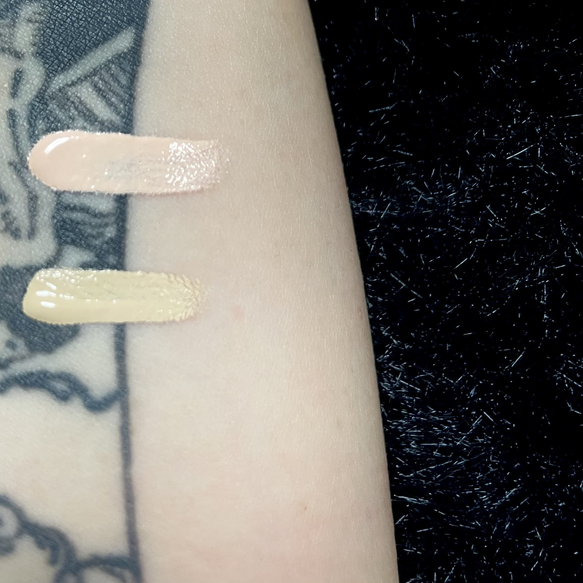 元々ツヤ肌に仕上げたいけどリキッドやクッションの塗ってる感、肌が重くなる感じが嫌でツヤ系下地にパウダーファンででベースメイクは仕上げてました。 久しぶりのリキッドにドキドキしながら使ってみると驚きのツヤ、爆誕🥹🫶🏻 リキッドの沼にハマりそうでこわい、顔面は一つしかないのに。 カバー力はあんまり無いからカバーしたいところは下地とコンシーラーで。 ツヤ肌最高〜❤️🔥❤️🔥❤️🔥