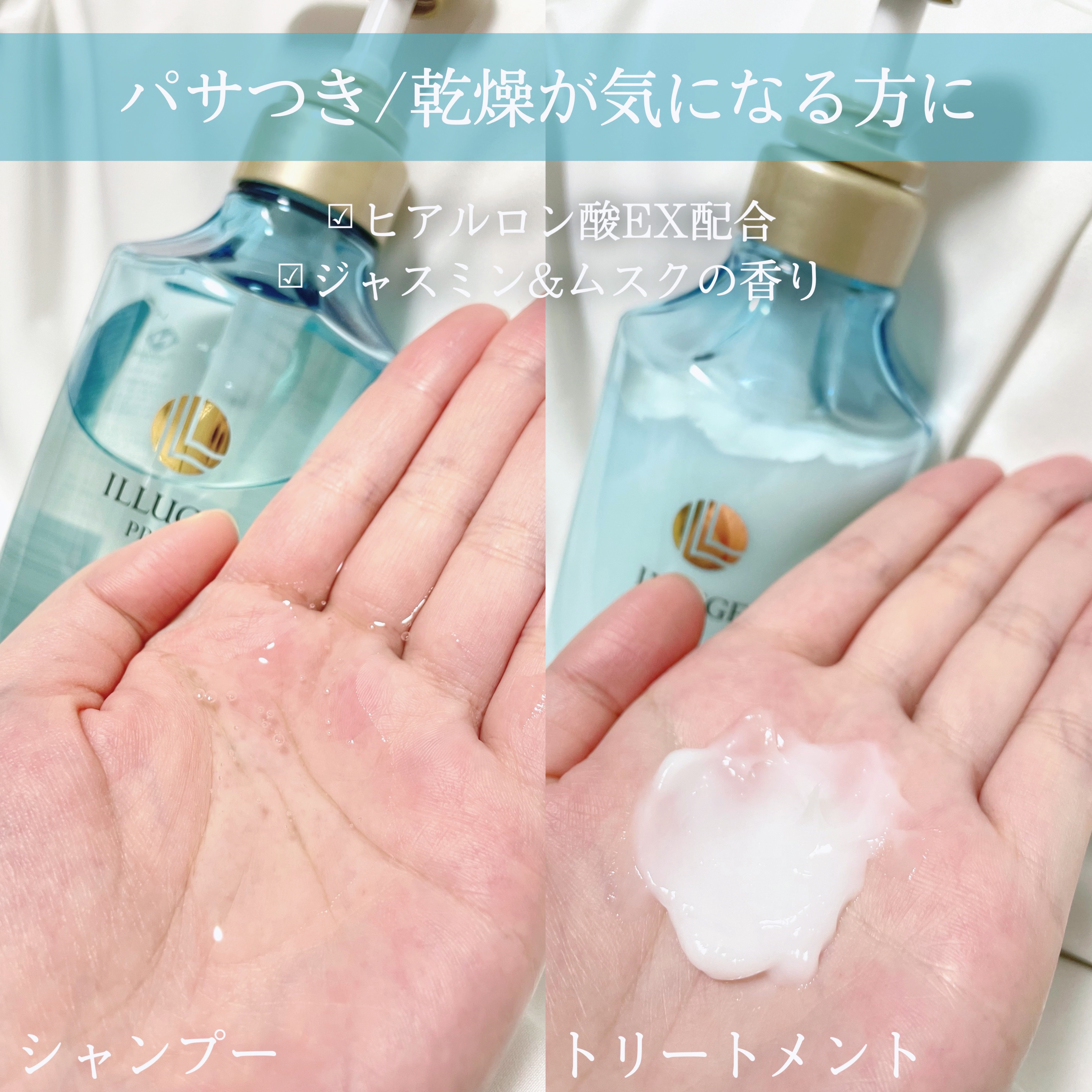 髪の芯から潤う高保湿シャンプー&トリートメント♪ 乾燥してパサつきがちな髪に潤いを与え、しっとりまとまる髪へ導きます。 泡立ちの良いシャンプーとなめらかに仕上げてくれるトリートメントでとても使い心地が良いです。 ジャスミン&ムスクと洗練された落ち着く香り。