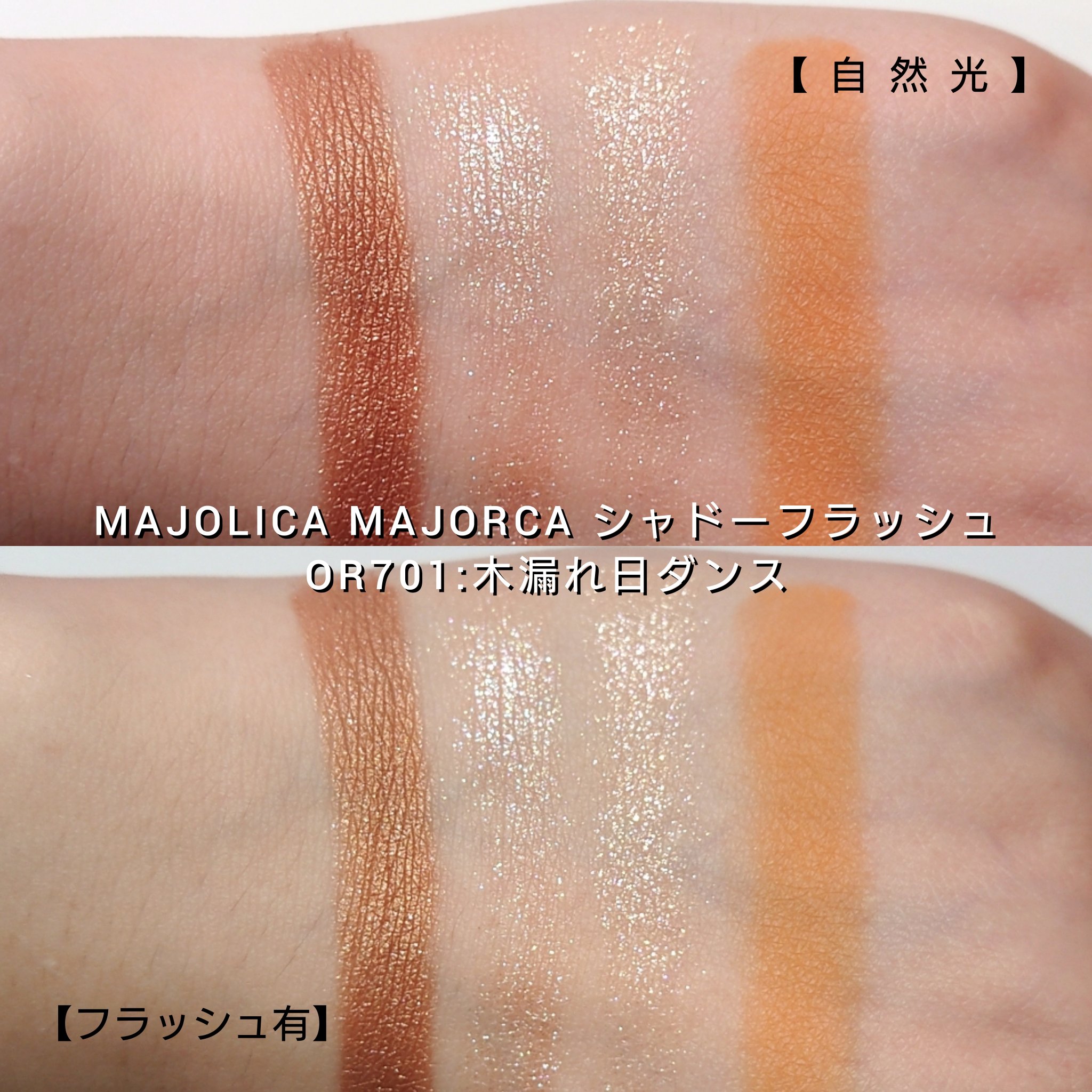 👑MAJOLICAMAJORCA👑シャドーフラッシュOR701木漏れ日ダンスマジョマジョの限定じゃない方のパレットこのシリーズのグリッターが本当にきれいキラッキラ✨木漏れ日ダンスの中のびいどろカラーオレンジベースに多色ラメがたっぷりで濡れツヤ...