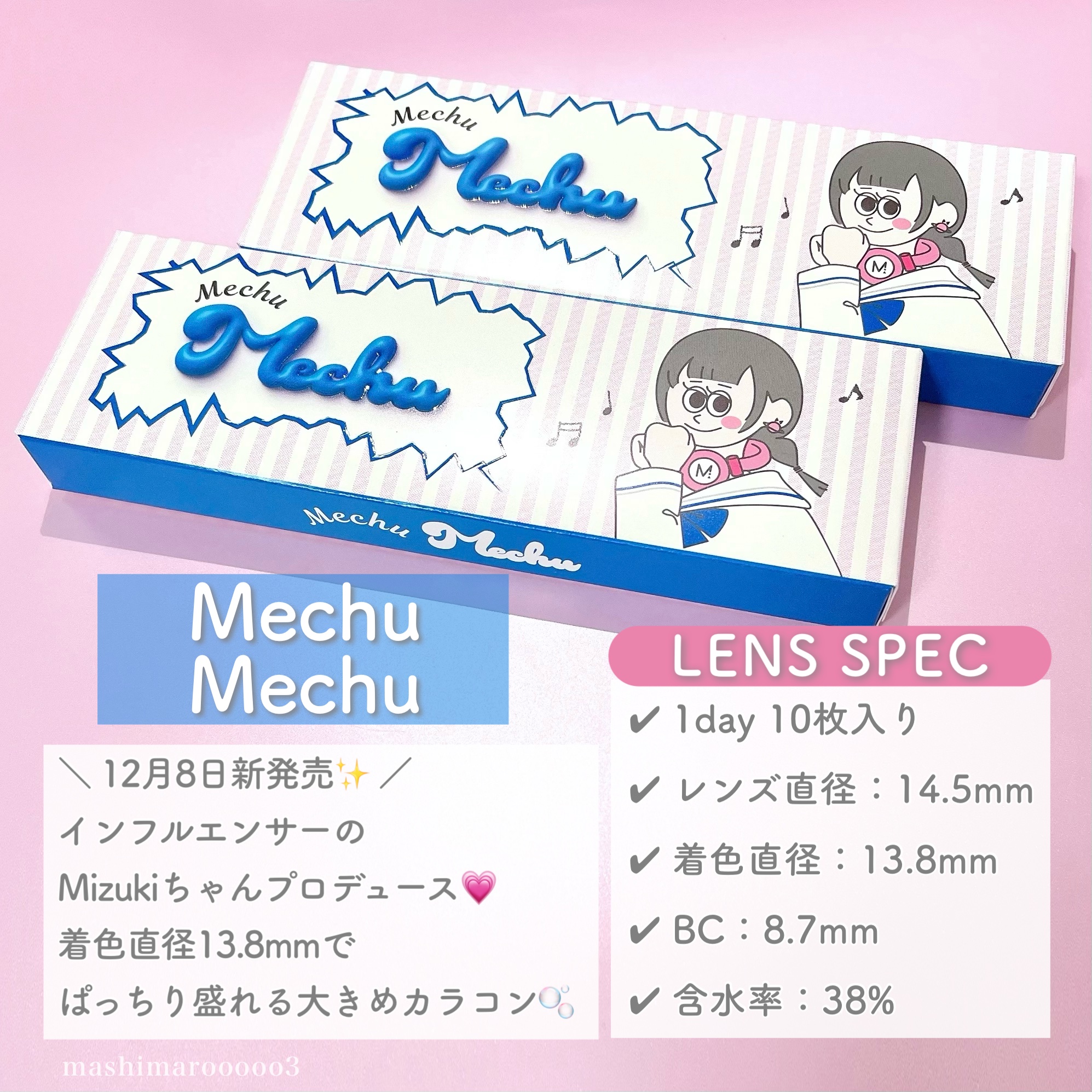 🩷MechuMechu-ミチュミチュ-⊹࣪˖┈┈˖࣪⊹┈┈⊹࣪˖┈┈˖࣪⊹┈┈⊹࣪˖┈┈˖࣪⊹◇スペック(全色共通)DIA14.5mm着色直径13.8mmBC8.7mm含水率38%1day(一箱10枚入り)Mizukiちゃんプロデュースのカラ...