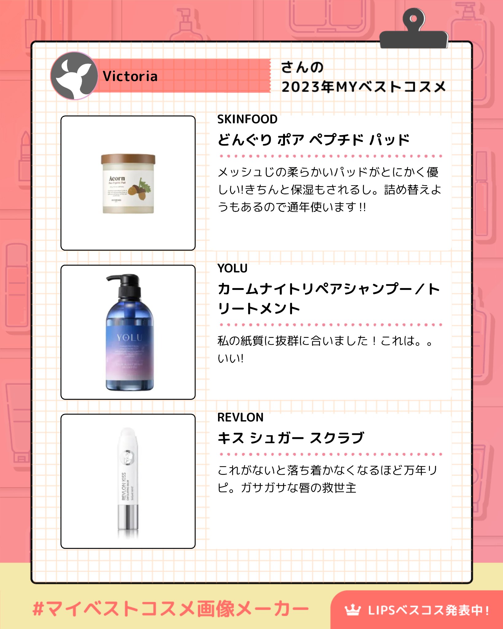 Victoriaちゃんのベスコス❤️ YOLUのシャンプー&トリートメントは私もお気に入り❤️ 私もベスコス作ろうと思ったけど、選びきれず断念😅