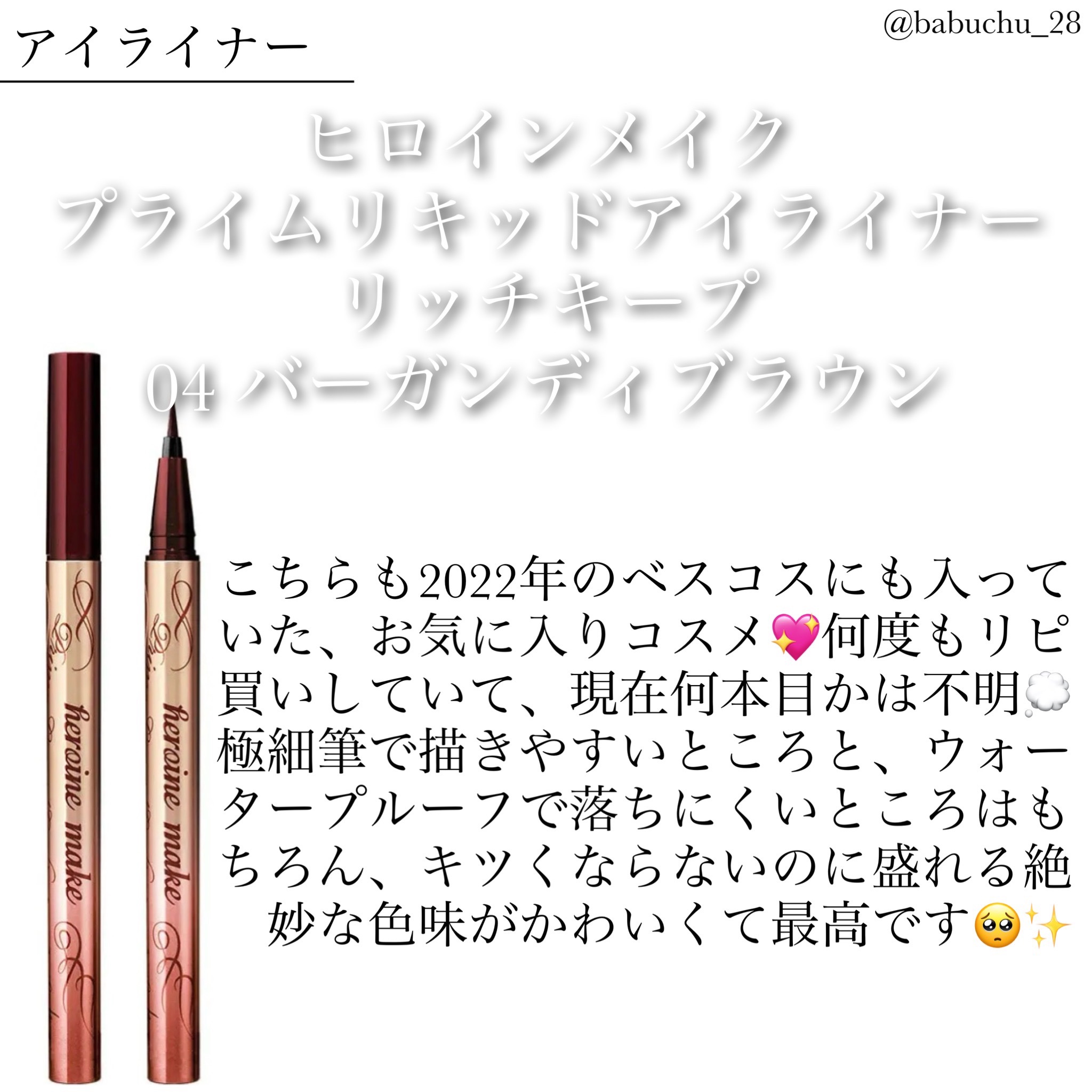 | メイクアップランキング第53位 | ラブライナーのアイライナーってほんと描きやすいから好き!重みのあるアルミボトルもお洒落な上に使いやすい | 詳細を見る | |