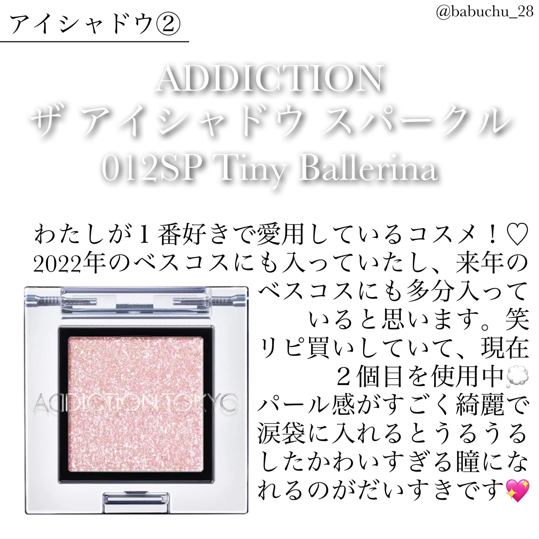 | 単色アイシャドウランキング第95位 | 肌にのせるとパールがツヤツヤで綺麗なのが、いつまでも見ていたくなるのです💫 | 詳細を見る | |