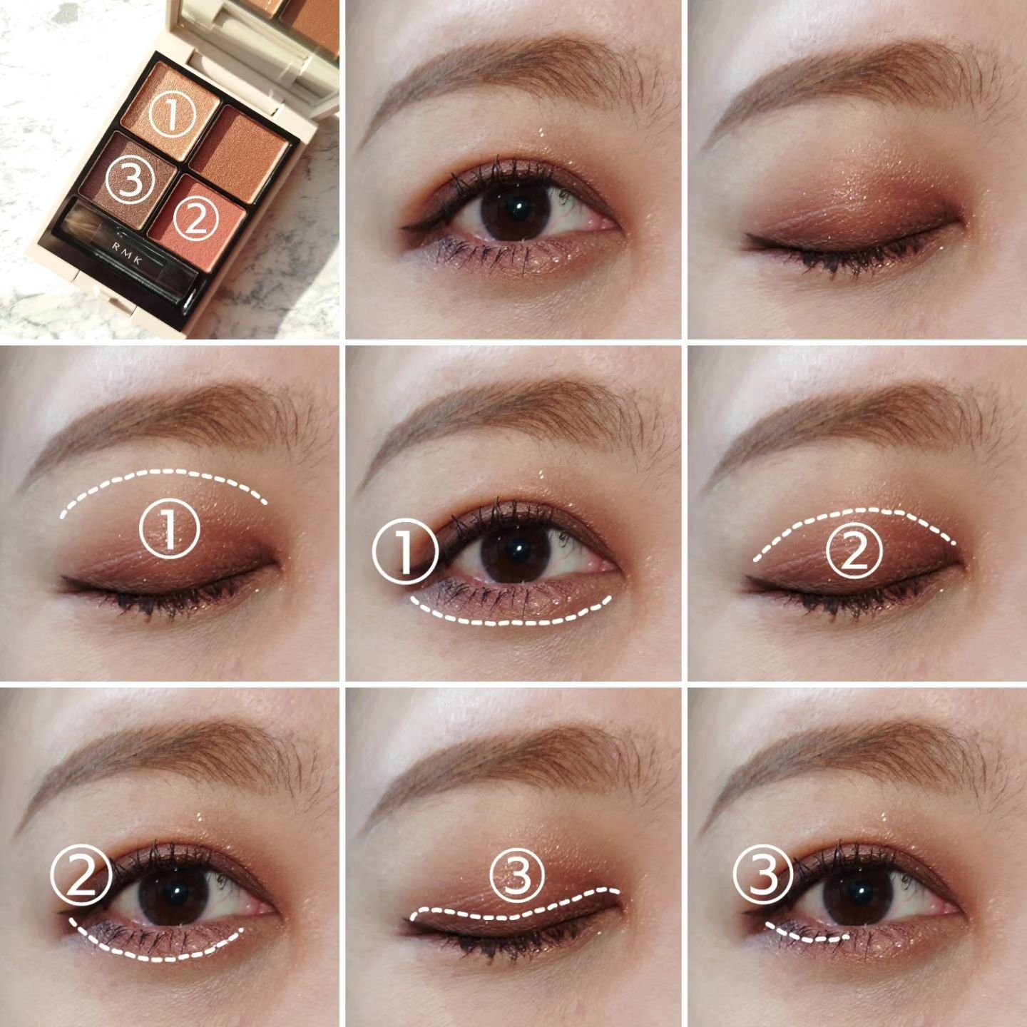 #シンクロマティックアイシャドウパレット ∟ EX-03 スイート テンパード EX-04 ジェントル EX-06 ヴァイブラント 05 ディライトフル @rmkofficial #rmk #今日のメイク #メイクレシピ #コスメ好きな人と繋がりたい