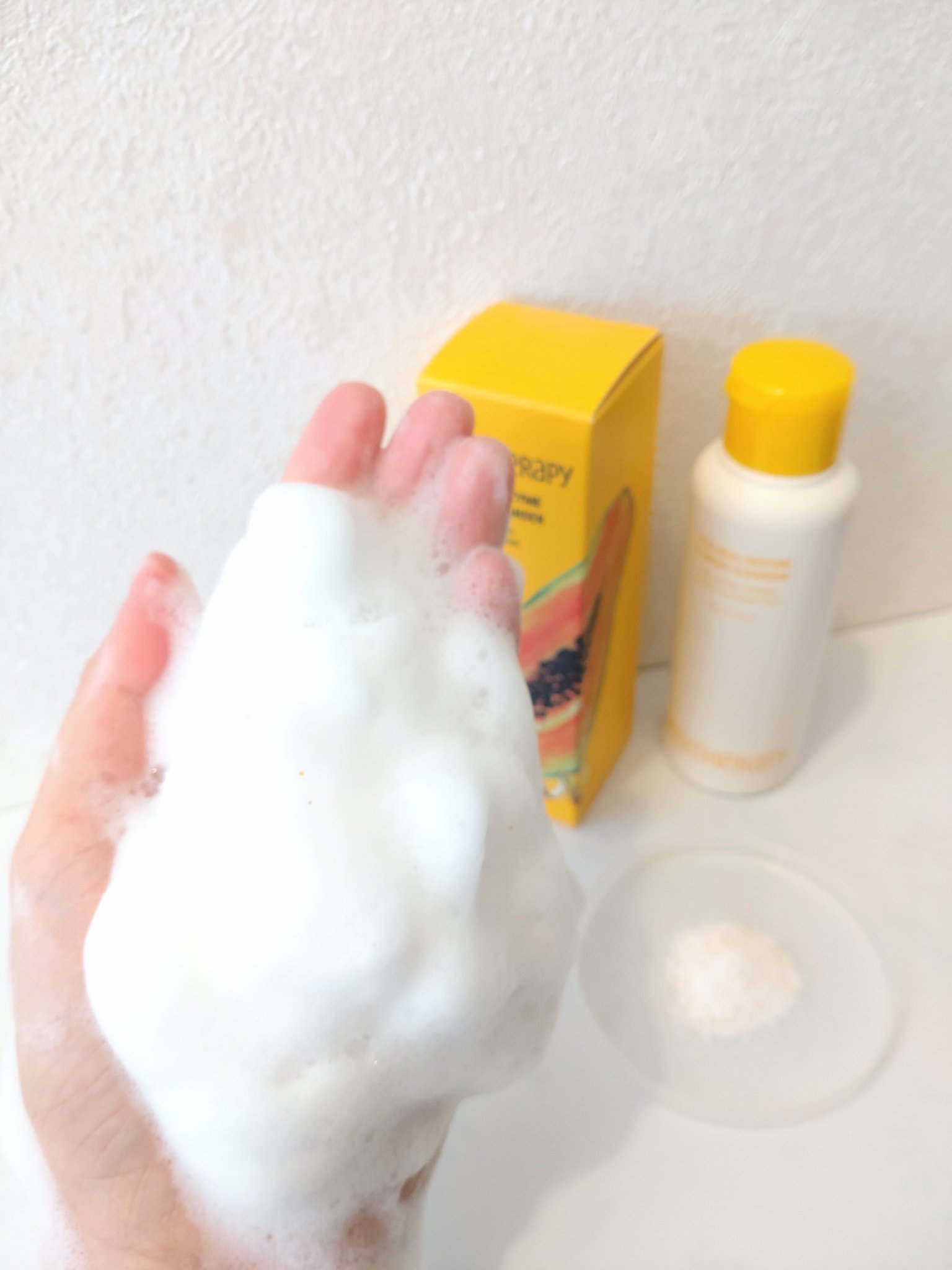 毛穴に詰まった皮脂や汚れをすっきり洗浄♬ サラサラのテクスチャーでベタつき、ぬるつきない感じでサッパリします♬ もちもちバブルの酵素パウダー 老廃物を吸着し、なめらかツルツル肌へ♬ 泡立てると、キメ細かい泡が納豆のようにねばーる🫧 使用する前に振ると、酸素(O₂)バブルが出てきて 拭き取ると、スッキリ♬ 整肌成分ガラクトミセス培養液配合で毛穴ケア