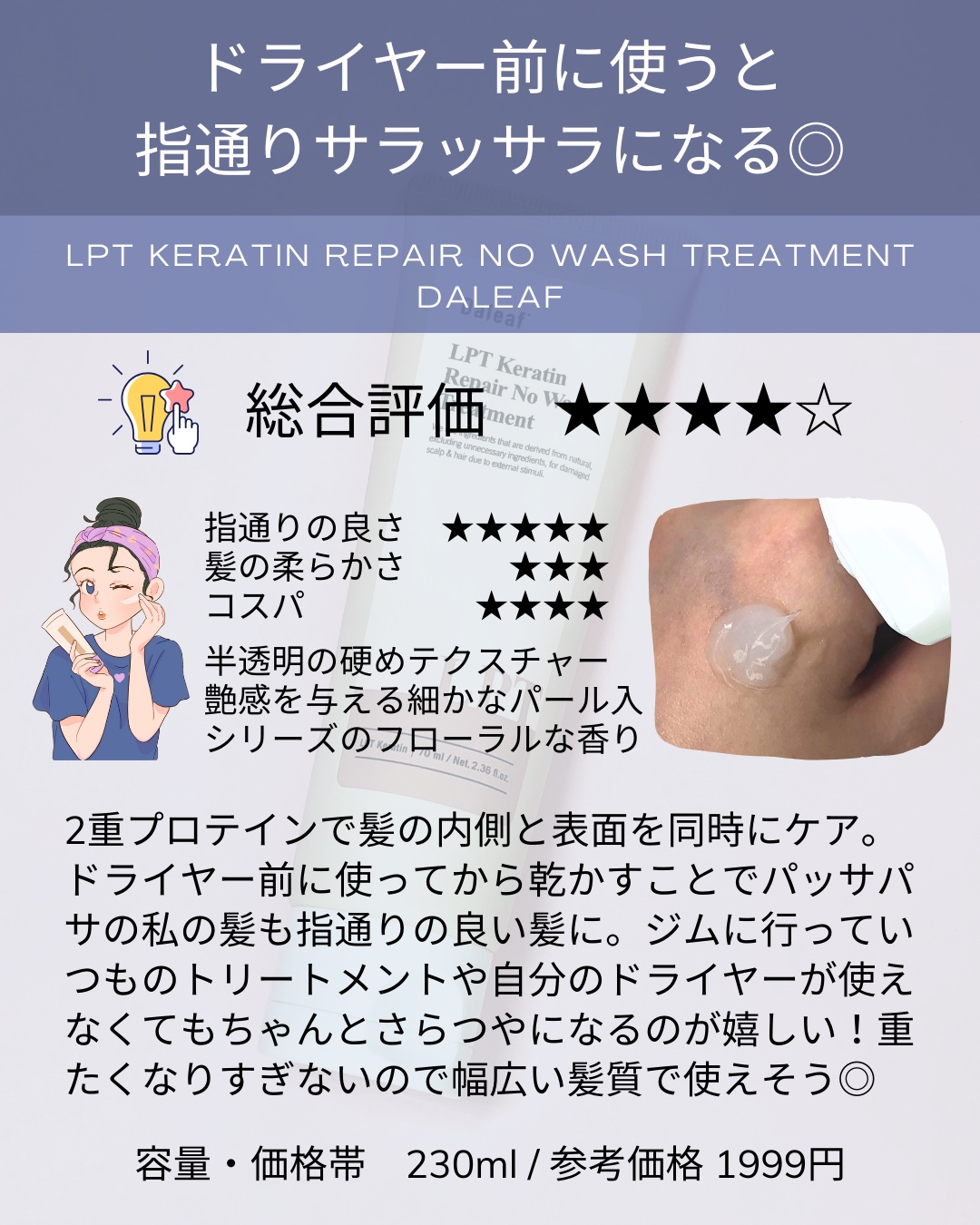 Daleaf-ダリーフ-『LPTKeratinRepairNo-WashTreatment』をお試ししました☺️\ダリーフの洗い流さないトリートメントがリニューアル✨️して登場❣️/元々ダリーフのトリートメントは、使わせて頂いてましたが、この...