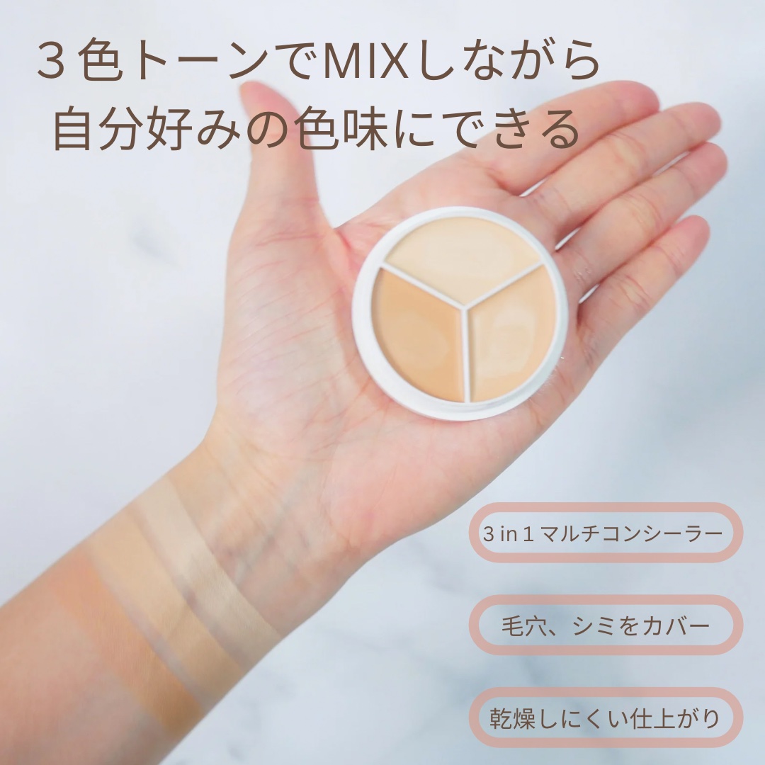 - クマからニキビ跡、シミまでこれ1つでカバー。 3色タイプだからこそ、気になるところや肌色を選ばずにご使用いただけます。 リキッドタイプを圧縮した高濃度バームのため高カバー高密着*¹を実現。 コンシーラーだけでなくコントアとしても使用可能です。 *1メーカー比
