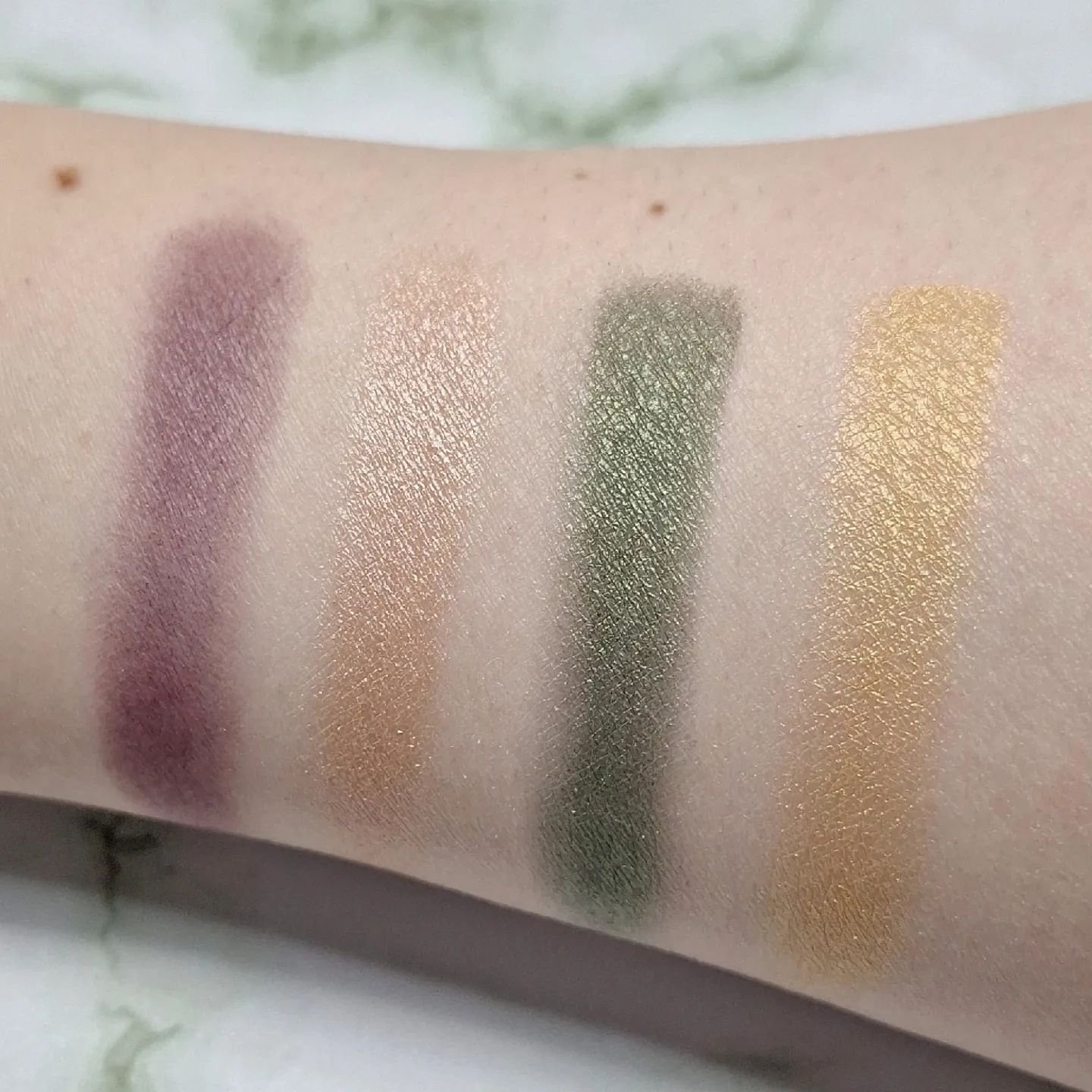 そして今までにない新しい質感❗ 粉なんだけど硬めのクリームのような感じ😳 繊細なシルバーラメが煌めくマット4色のパレットで、ナチュラルな発色🧡 硬めのクリームみたいな質感が、しっとりとしていて肌にピタッと密着👍❤️ 粉飛びもしないです‼ 肌馴染みが良いカラーなので、普段使いもしやすいかな🙋♀️