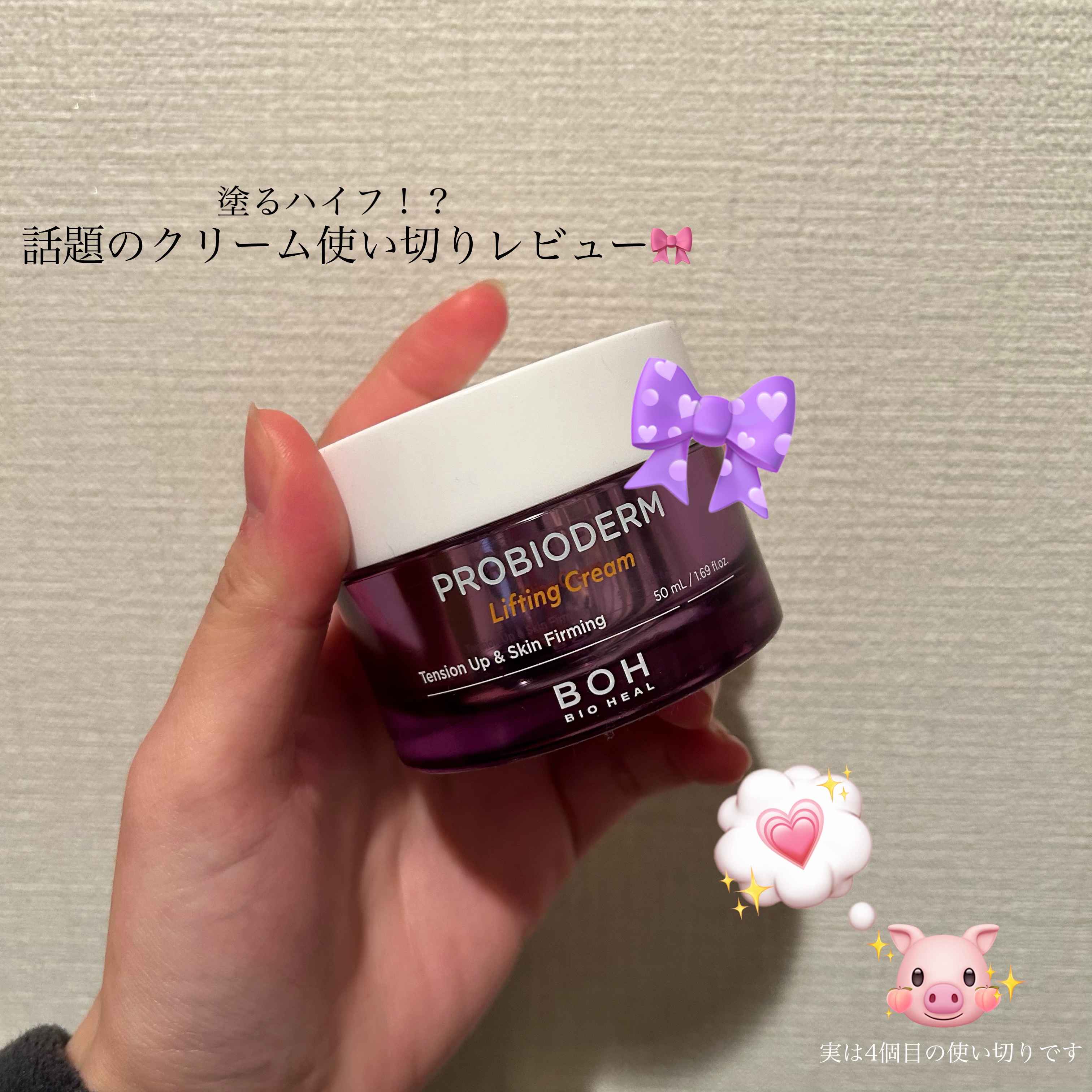 タンタンクリームでおなじみのBIO HEAL BOH✨ 【プロバイオダーム™3Dリフティングクリーム】ハリ活乳酸菌 3Dタンタンクリーム こっくりとしたテクスチャー🫧 でも、なじんでくんだよね〜💕 エイジングケアができるんだって! これ、めっちゃお気に入り〜💕 ジェルっぽくて、みずみずしいテクスチャーなの🫧ハマるよ〜🩷