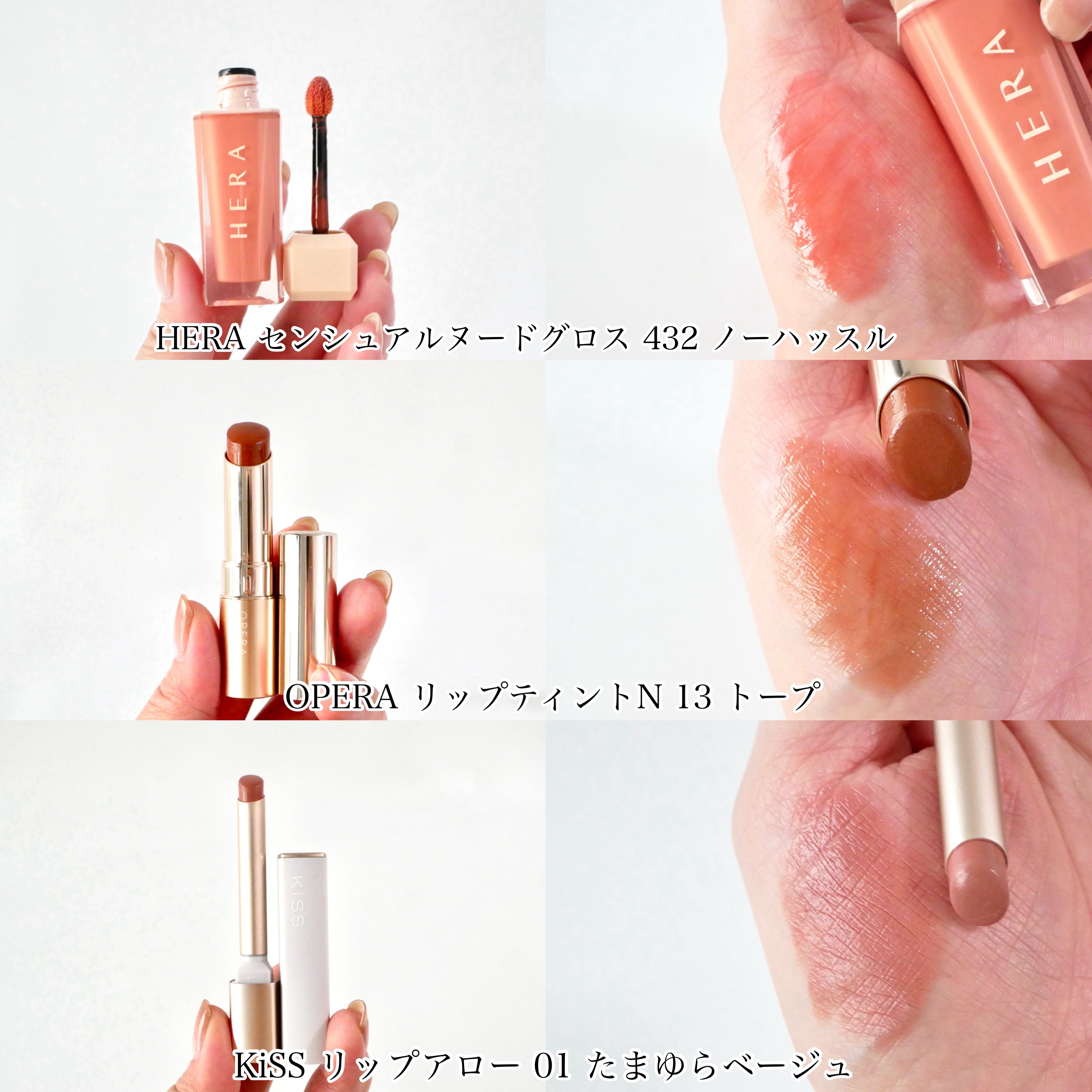 とってもなめらかで、ちゅるんと仕上がるリップバーム♪柔らかくてとろけるように塗れます☆ リップバームって色つかないな〜っていうアイテムも多いんですけど、これはリップバームにしては高発色♡ でも透け感もあって、保湿リップとしてもリップメイクの主役としても使える便利な仕上がりです。 私が選んだ01 ココヌードと05 ヌガーサンドはベージュやブラウン系が好きな人におすすめ!肌なじみがとっても良くて、イエベ春の私が使うと肌が明るく見えます♪ 結構すぐなくなると思うけど、お手軽価格(¥1.320)なのでコスパはいい!