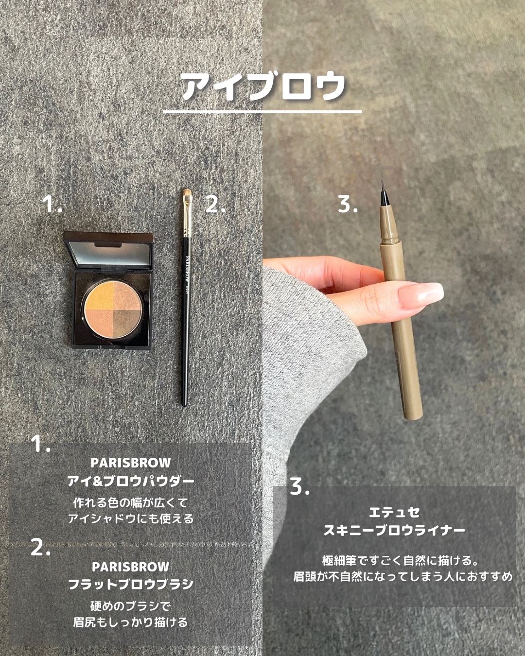 私自身、元々とても苦手だった眉メイクを現在は得意としていて様々なメイク方法も動画にしています🎥 メイクのやり方は1つではないから色んなパターンの中から自分に合う方法を見つけて貰えたら嬉しいです❣️ 自分に合うやり方が見つかりますように🙏✨