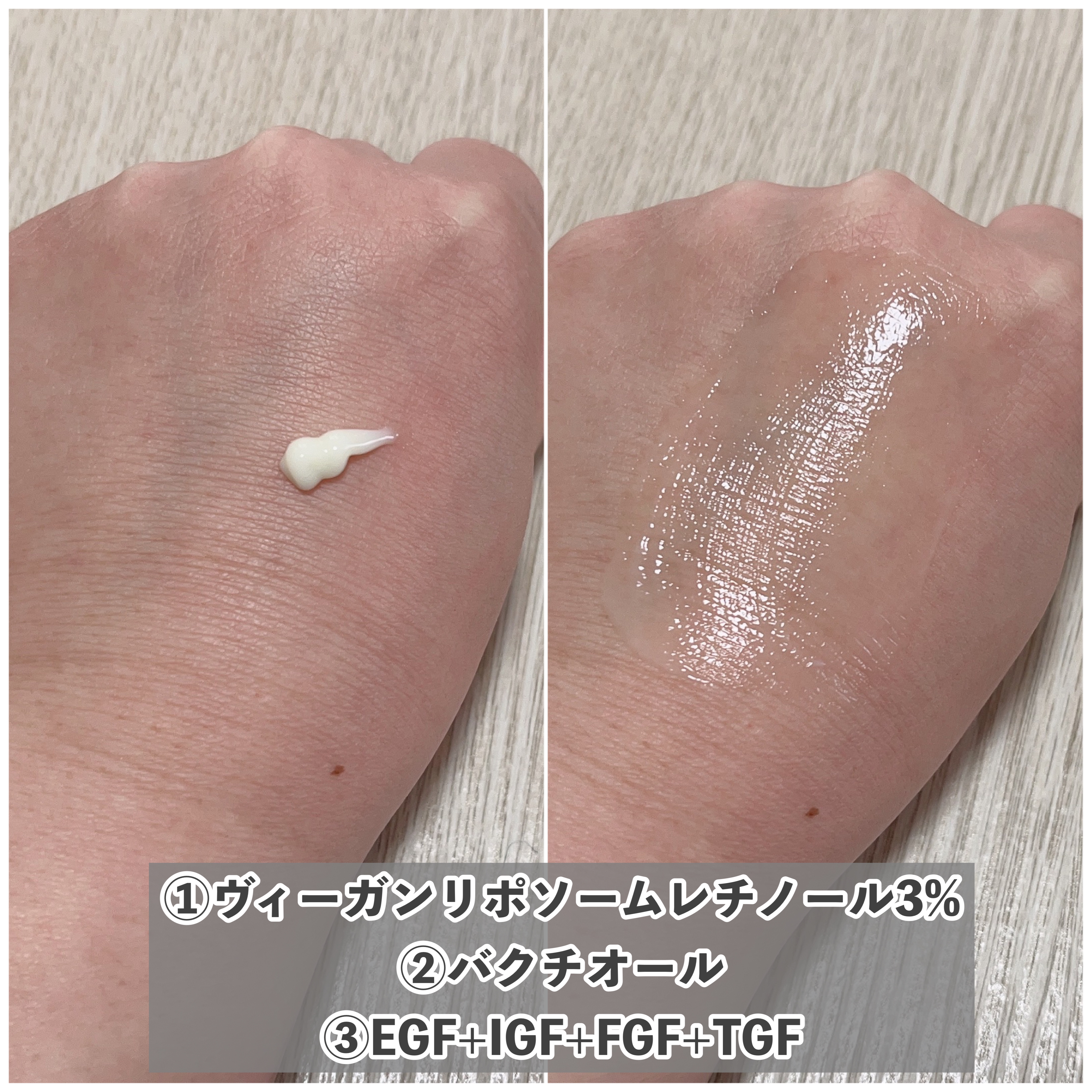 セラムだけど、乳液や柔らかいクリームのようなテクスチャー。 ヴィーガンリポソームレチノール3%*1 配合✨ クリームは、韓国のオリーブヤングで大人気✨ クリーム部門でランク上位にいた実績もあり、 フィラシード™️10,000ppm、セラミドNP※3、ヒアルロン酸※4配合で、角質層までしっかり集中保湿✨