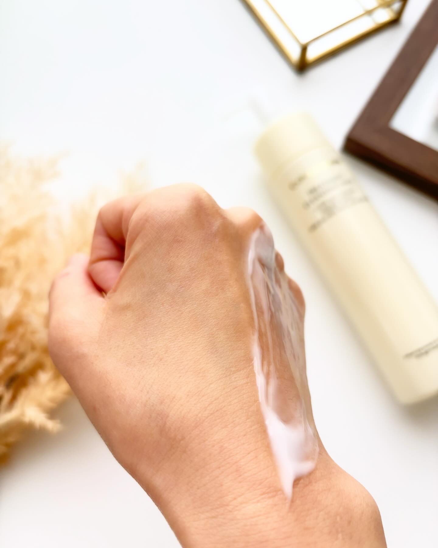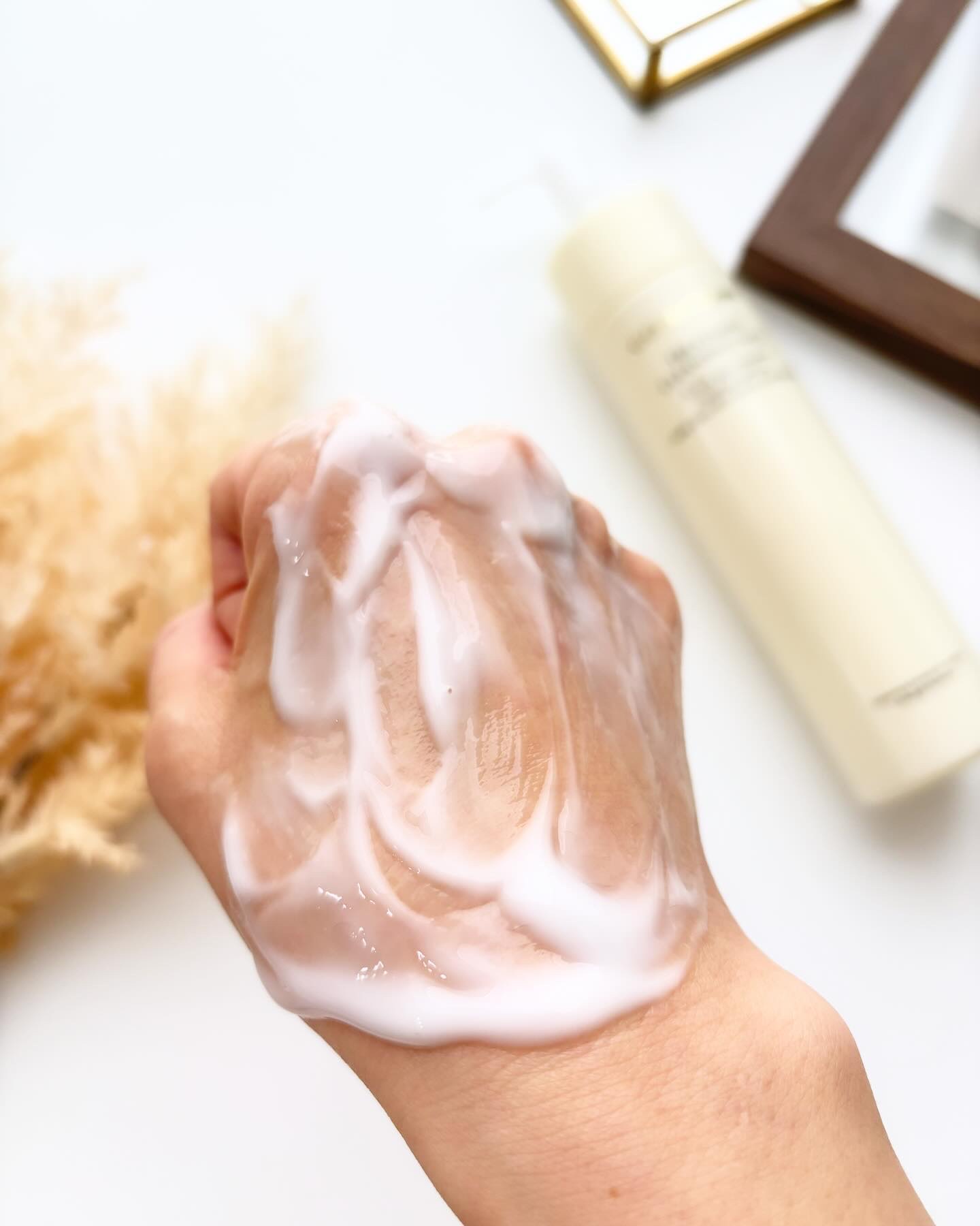 美容成分89%配合し素肌からしっとりもちもち。ヒアルロン酸の2倍の保湿力をもつ独自成分MCキトサン配合。 洗い流した後の肌に保湿ヴェールを形成し使うたびに潤ってしっとりもちもちに。 ミルククレンジングの中だとメイク落ちよくとろみがありやわらかな使い心地。