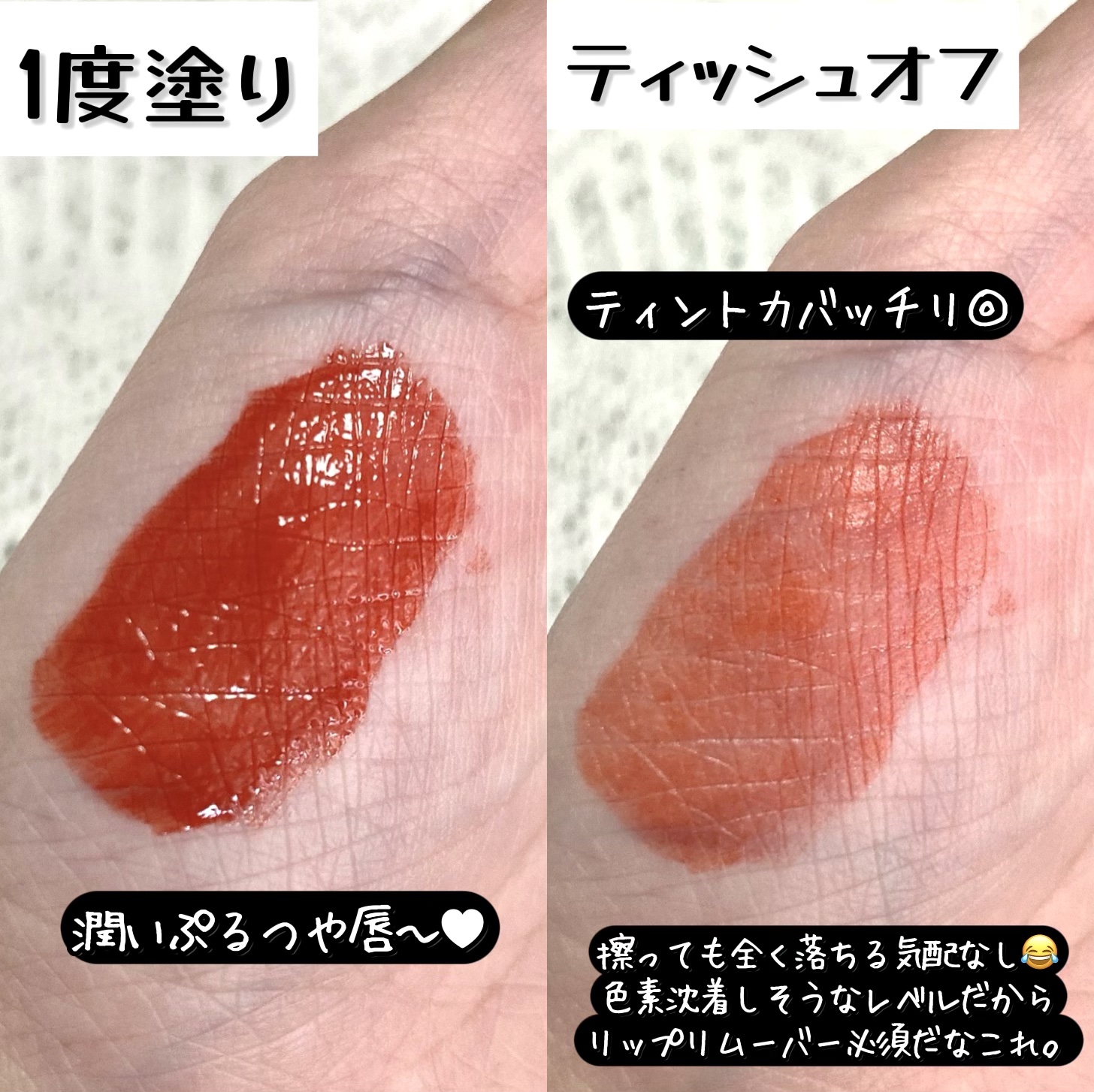 | 塗った瞬間は水感テクスチャーでグロスみたいにちゅるちゅるんの唇になるんだけど時間が経つとマットなふわふわ質感になって素の唇かのようにピタッと馴染む𓂅𓂅 | 詳細を見る |