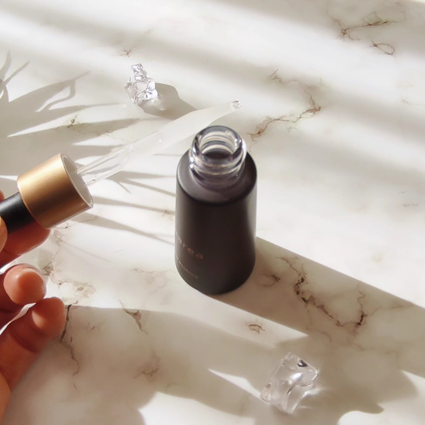 しっとりな使い心地がうれしい💛 高級感のあるガラスボトルがとっても素敵です! オイル層とローション層に分かれてるのでまずはよ~く振ってから使ってね。 オイルが入っているとは思えないようなサラッとしたテクスチャー✨ なじませると、みずみずしく しっとりとした使い心地です🤍 肌にほどよいツヤ感が出るので、ツヤ肌メイク好きの方にも向いている思う! 9つのフリー処方なのも、ゆらぎ肌にはうれしい処方だよね。