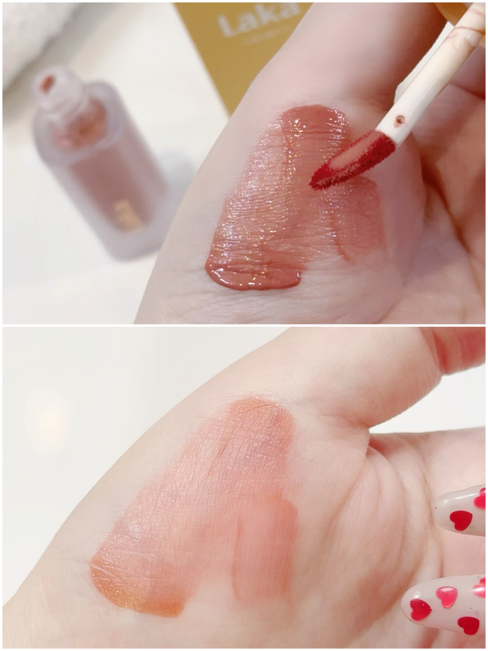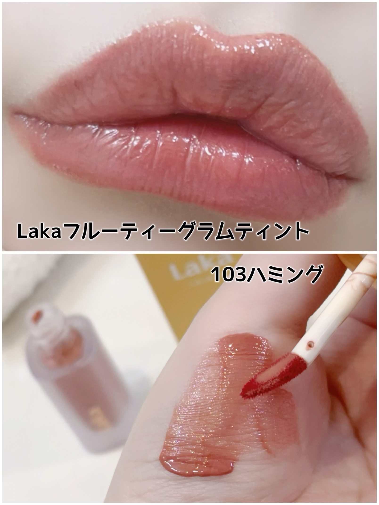 【春の予感ハミング💞うるうるティント】Lakaフルーティーグラムティント103ハミング大人気&私も大好きなティントの「103ハミング」♡ピンクベージュ系の発色で落ち着いた雰囲気と可愛らしさがあってめーっちゃ好き🥹私の場合は唇に塗るとほんのり赤...