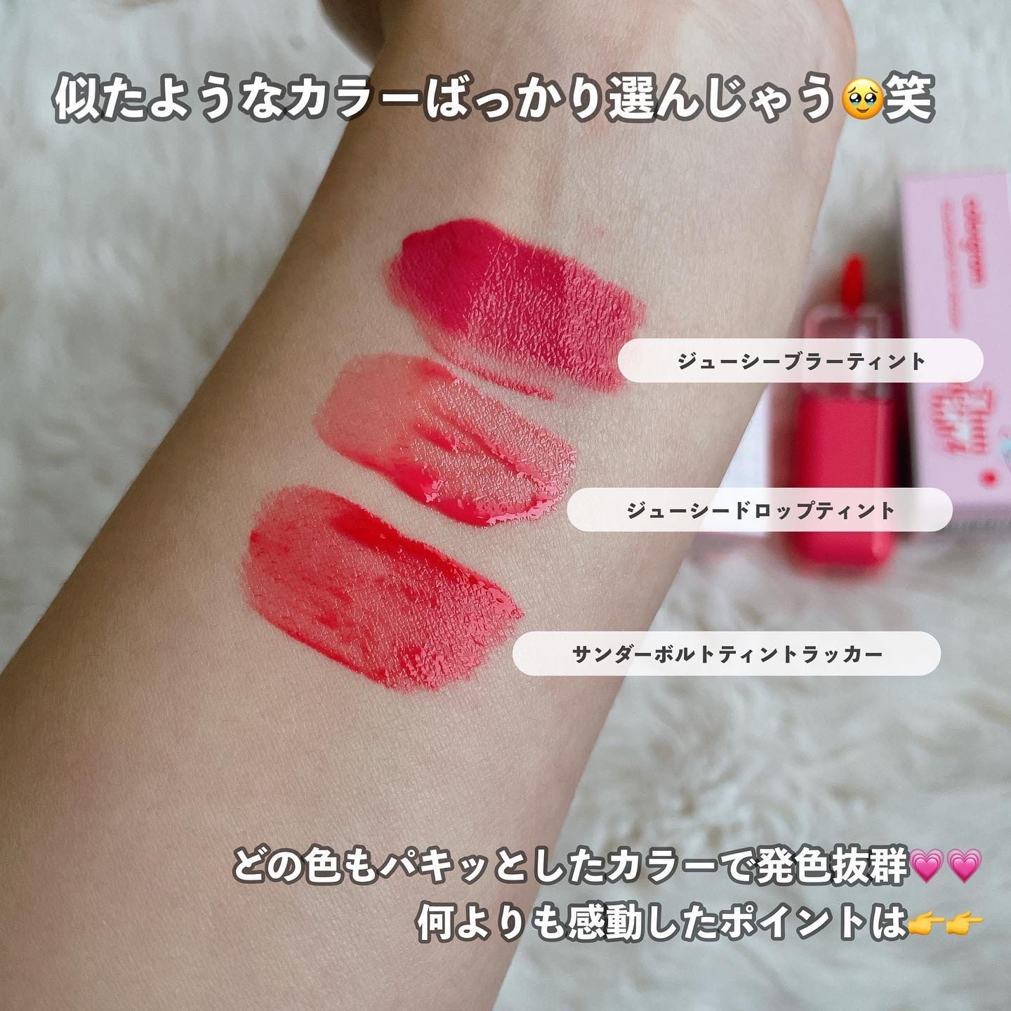カラバリは全部で16色! お気に入りのカラーが見つかるはず…!! 流行りのタンフルのようなメイクアップ効果による透明感溢れるツヤ 今回紹介したカラーはいちごミルクのようなキュートなピンクカラーです🍓🤍