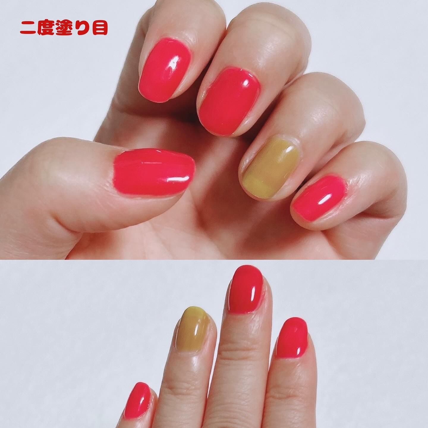 ハケは使いやすい系です。 キレイなナチュラルネイル!!!!! ネイルデザイン思いつかない時なんか、二度塗りするだけでオッケー。 キレイな爪を維持できますね。 ベースコート変えただけでこんなに変わる?と驚くばかりです。 ナチュラルネイル派の方に全力でおすすめします! ベースコートとして問題なく使えているので、一本持っているとセルフネイルが楽になると思います。
