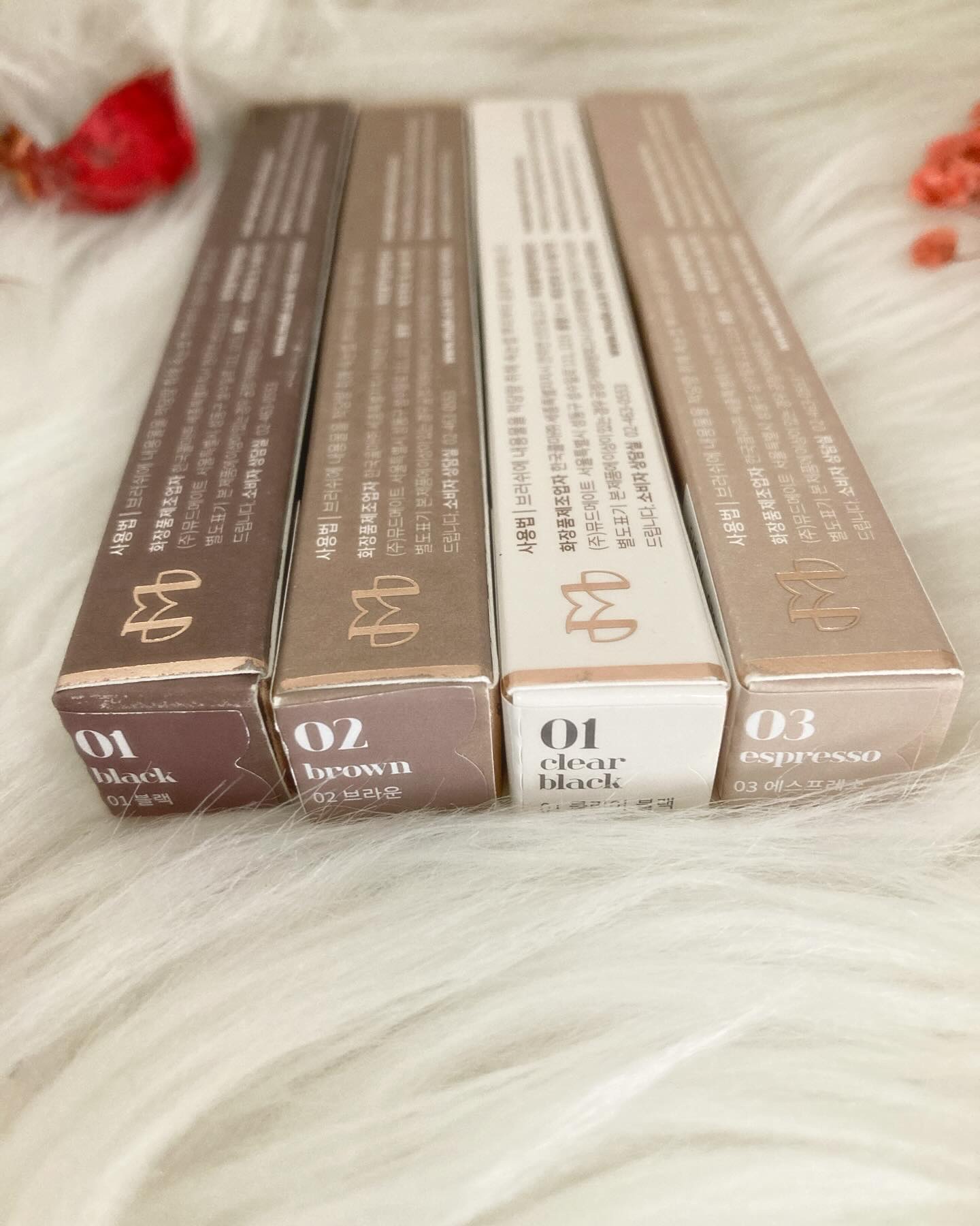 mude人気アイテムのマスカラ3種とブロウカラを紹介✨【インスパイアスキニーカーリングマスカラ】01ブラック05ミュートブラウン08モハーベピンク繊維落ち無しのファイバーFREEマスカラ。重ね塗りしてもダマになりにくいジェルテクスチャーで、小...