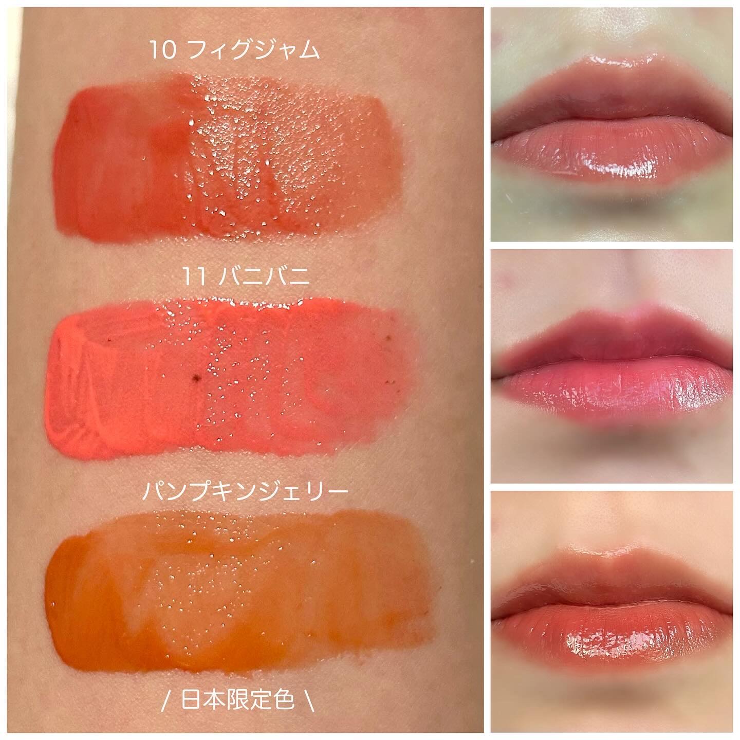 - <01 モモジェリー> Water、Diphenyl Dimethicone、Diisostearyl Malate、Bis-Diglyceryl Polyacyladipate-2、Hydrogenated Polyisobutene、Bis-Behenyl/Isostearyl/Phytosteryl Dimer Dilinoleyl Dimer Dilinoleate、Cetyl PEG/PPG-10/1 Dimethicone、Diglycerin、Hydrogenated Polydecene、Dipropylene Glycol、Polysorbate 60、Sorbitan Isostearate、Hydroxyethyl Acrylate/Sodium Acryloyldimethyl Taurate Copolymer、Pentylene Glycol、Squalane、Titanium Dioxide (CI 77891)、Ethylene/Propylene Copolymer、Ceteareth-20、Phenoxyethanol、Polyglycerin-3、Yellow 5 (CI 19140)、Red 33 (CI 17200)、Fragrance、Ethylhexylglycerin、Glycerin、Aluminum Hydroxide、Ammonium Polyacrylate、Yellow 6 (CI 15985)、Butylene Glycol、Blue 1 (CI 42090)、Tocopheryl Acetate、Prunus Persica (Peach) Fruit Extract、1,2-Hexanediol、Sodium Hyaluronate、Hydroxypropyltrimonium Hyaluronate、Sodium Acetylated Hyaluronate、Hydrolyzed Hyaluronic acid、Hyaluronic Acid、Sodium Hyaluronate Crosspolymer、Hydrolyzed Sodium Hyaluronate、Potassium Hyaluronate <02 ヘルシーサーモン> Water、Diphenyl Dimethicone、Diisostearyl Malate、Bis-Diglyceryl Polyacyladipate-2、Hydrogenated Polyisobutene、Bis-Behenyl/Isostearyl/Phytosteryl Dimer Dilinoleyl Dimer Dilinoleate、Cetyl PEG/PPG-10/1 Dimethicone、Diglycerin、Hydrogenated Polydecene、Dipropylene Glycol、Polysorbate 60、Sorbitan Isostearate、Hydroxyethyl Acrylate/Sodium Acryloyldimethyl Taurate Copolymer、Pentylene Glycol、Squalane、Ethylene/Propylene Copolymer、Ceteareth-20、Phenoxyethanol、Titanium Dioxide (CI 77891)、Polyglycerin-3、Yellow 6 (CI 15985)、Fragrance、Ethylhexylglycerin、Red 33 (CI 17200)、Glycerin、Red 28 (CI 45410)、Aluminum Hydroxide、Ammonium Polyacrylate、Yellow 5 (CI 19140)、Butylene Glycol、Tocopheryl Acetate、Blue 1 (CI 42090)、Prunus Persica (Peach) Fruit Extract、1,2-Hexanediol、Sodium Hyaluronate、Hydroxypropyltrimonium Hyaluronate、Sodium Acetylated Hyaluronate、Hydrolyzed Hyaluronic acid、Hyaluronic Acid、Sodium Hyaluronate Crosspolymer、Hydrolyzed Sodium Hyaluronate、Potassium Hyaluronate <03 ヌーディーピンク> Water、Diphenyl Dimethicone、Diisostearyl Malate、Bis-Diglyceryl Polyacyladipate-2、Hydrogenated Polyisobutene、Bis-Behenyl/Isostearyl/Phytosteryl Dimer Dilinoleyl Dimer Dilinoleate、Cetyl PEG/PPG-10/1 Dimethicone、Diglycerin、Hydrogenated Polydecene、Dipropylene Glycol、Polysorbate 60、Sorbitan Isostearate、Hydroxyethyl Acrylate/Sodium Acryloyldimethyl Taurate Copolymer、Pentylene Glycol、Squalane、Ethylene/Propylene Copolymer、Ceteareth-20、Titanium Dioxide (CI 77891)、Phenoxyethanol、Polyglycerin-3、Red 33 (CI 17200)、Yellow 5 (CI 19140)、Fragrance、Ethylhexylglycerin、Glycerin、Aluminum Hydroxide、Ammonium Polyacrylate、Butylene Glycol、Blue 1 (CI 42090)、Tocopheryl Acetate、Prunus Persica (Peach) Fruit Extract、1,2-Hexanediol、Sodium Hyaluronate、Hydroxypropyltrimonium Hyaluronate、Sodium Acetylated Hyaluronate、Hydrolyzed Hyaluronic acid、Hyaluronic Acid、Sodium Hyaluronate Crosspolymer、Hydrolyzed Sodium Hyaluronate、Potassium Hyaluronate <04 ローズミルク> Water、Diphenyl Dimethicone、Diisostearyl Malate、Bis-Diglyceryl Polyacyladipate-2、Hydrogenated Polyisobutene、Bis-Behenyl/Isostearyl/Phytosteryl Dimer Dilinoleyl Dimer Dilinoleate、Cetyl PEG/PPG-10/1 Dimethicone、Diglycerin、Hydrogenated Polydecene、Dipropylene Glycol、Polysorbate 60、Sorbitan Isostearate、Hydroxyethyl Acrylate/Sodium Acryloyldimethyl Taurate Copolymer、Pentylene Glycol、Squalane、Ethylene/Propylene Copolymer、Ceteareth-20、Titanium Dioxide (CI 77891)、Phenoxyethanol、Polyglycerin-3、Red 28 (CI 45410)、Yellow 6 (CI 15985)、Fragrance、Ethylhexylglycerin、Red 33 (CI 17200)、Glycerin、Aluminum Hydroxide、Ammonium Polyacrylate、Butylene Glycol、Blue 1 (CI 42090)、Tocopheryl Acetate、Prunus Persica (Peach) Fruit Extract、1,2-Hexanediol、Sodium Hyaluronate、Hydroxypropyltrimonium Hyaluronate、Sodium Acetylated Hyaluronate、Hydrolyzed Hyaluronic acid、Hyaluronic Acid、Sodium Hyaluronate Crosspolymer、Hydrolyzed Sodium Hyaluronate、Potassium Hyaluronate <05 ベージュフィグ> Water、Diphenyl Dimethicone、Diisostearyl Malate、Bis-Diglyceryl Polyacyladipate-2、Hydrogenated Polyisobutene、Bis-Behenyl/Isostearyl/Phytosteryl Dimer Dilinoleyl Dimer Dilinoleate、Cetyl PEG/PPG-10/1 Dimethicone、Diglycerin、Hydrogenated Polydecene、Dipropylene Glycol、Polysorbate 60、Sorbitan Isostearate、Hydroxyethyl Acrylate/Sodium Acryloyldimethyl Taurate Copolymer、Pentylene Glycol、Squalane、Titanium Dioxide (CI 77891)、Ethylene/Propylene Copolymer、Ceteareth-20、Phenoxyethanol、Polyglycerin-3、Yellow 5 (CI 19140)、Red 33 (CI 17200)、Fragrance、Ethylhexylglycerin、Yellow 6 (CI 15985)、Glycerin、Aluminum Hydroxide、Ammonium Polyacrylate、Butylene Glycol、Blue 1 (CI 42090)、Tocopheryl Acetate、Prunus Persica (Peach) Fruit Extract、1,2-Hexanediol、Sodium Hyaluronate、Hydroxypropyltrimonium Hyaluronate、Sodium Acetylated Hyaluronate、Hydrolyzed Hyaluronic acid、Hyaluronic Acid、Sodium Hyaluronate Crosspolymer、Hydrolyzed Sodium Hyaluronate、Potassium Hyaluronate <06 ソウルガール> Water、Diphenyl Dimethicone、Diisostearyl Malate、Bis-Diglyceryl Polyacyladipate-2、Hydrogenated Polyisobutene、Bis-Behenyl/Isostearyl/Phytosteryl Dimer Dilinoleyl Dimer Dilinoleate、Cetyl PEG/PPG-10/1 Dimethicone、Diglycerin、Hydrogenated Polydecene、Dipropylene Glycol、Polysorbate 60、Sorbitan Isostearate、Hydroxyethyl Acrylate/Sodium Acryloyldimethyl Taurate Copolymer、Pentylene Glycol、Squalane、Ethylene/Propylene Copolymer、Ceteareth-20、Titanium Dioxide (CI 77891)、Phenoxyethanol、Polyglycerin-3、Red 33 (CI 17200)、Yellow 6 (CI 15985)、Fragrance、Ethylhexylglycerin、Yellow 5 (CI 19140)、Glycerin、Aluminum Hydroxide、Ammonium Polyacrylate、Blue 1 (CI 42090)、Butylene Glycol、Tocopheryl Acetate