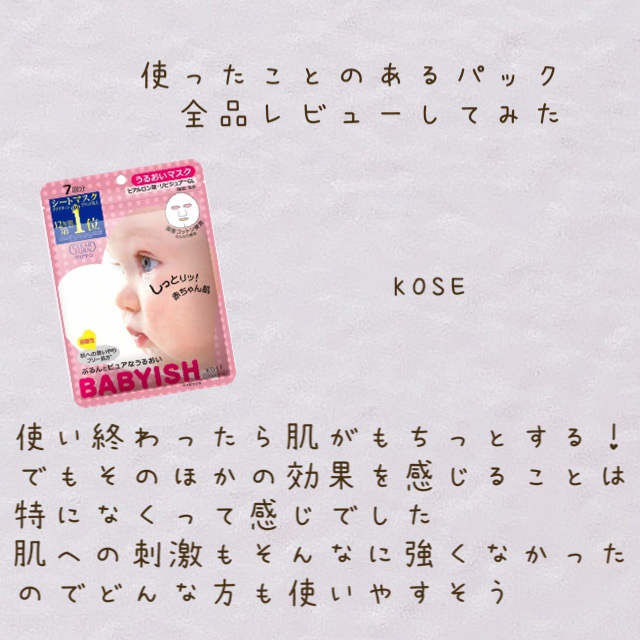 💗クリアターンベイビッシュうるおいマスク💗気軽に使える大容量(50回ぶん!)のシートマスクです✨洗顔後、化粧水がわりに使い、時間が来たらいつもの乳液でフタをします🥰使用感は、とてもみずみずしい💧✨油分を与えて保湿するというよりも、水分を補って...