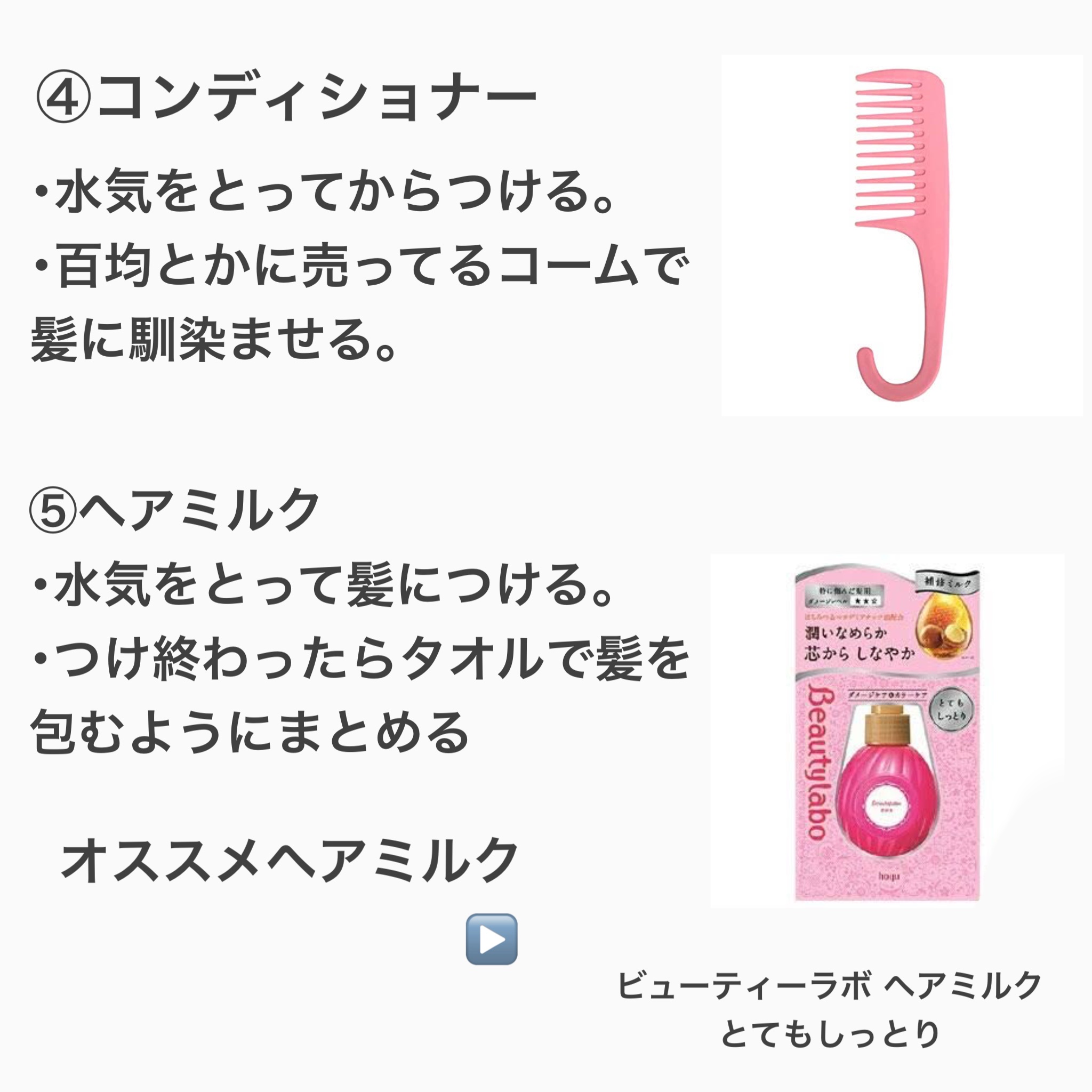 私のヘアケアまとめ。簡単なのでよければやってみてください。ヘアミルクはとてもしっとりか、もっととてもしっとりを使ってます。...