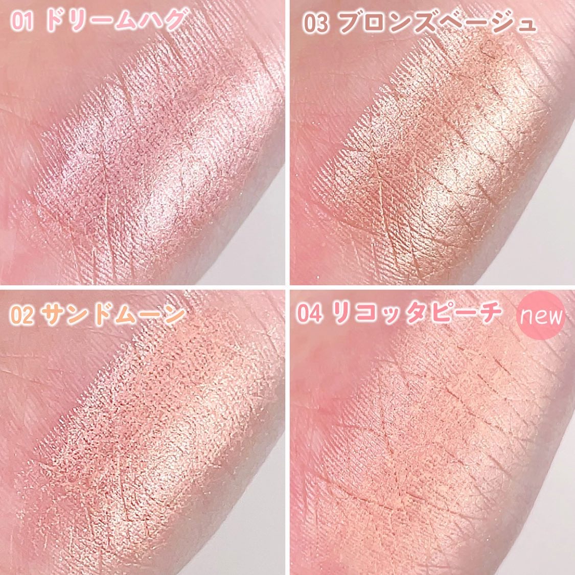 ナチュラルにぷくっと柔らかい印象にもなるカラーが可愛い💕 私は04リコッタピーチというカラーが特に自然な涙袋が描けると思いました✨ イエベさん向きと思いましたが、イエローに振り切っていないからブルベさんも使いやすいと思います☺️