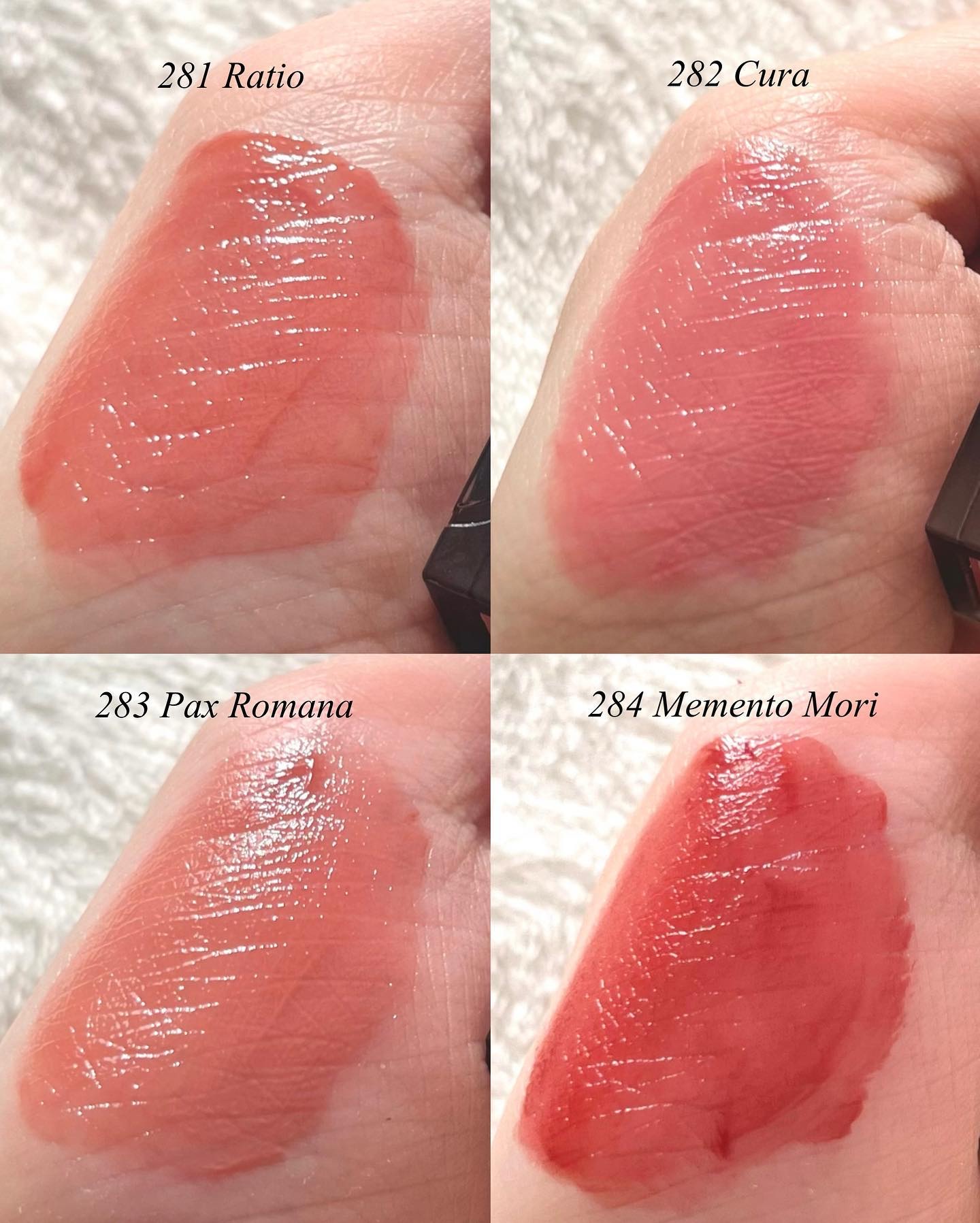 - <201 ノビリタス> 水、ジフェニルジメチコン、リンゴ酸ジイソステアリル、ビスジグリセリルポリアシルアジペート-2、オクチルドデカノール、水添ポリイソブテン、トリメチルシロキシフェニルジメチコン、ジグリセリン、セチルPEG/PPG-10/1ジメチコン、DPG、ポリソルベート60、イソステアリン酸ソルビタン、ペンチレングリコール、(アクリル酸ヒドロキシエチル/アクリロイルジメチルタウリンNa)コポリマー、セテアリルアルコール、スクワラン、酸化チタン、黄4、赤227、エチルヘキシルグリセリン、安息香酸ベンジル、黄5、香料、水酸化Al、ポリアクリル酸アンモニウム、リナロール、フェノキシエタノール、BG、塩化Na、青1、ヘキシルシンナマル、トコフェロール <202 ソフィア> 水、ジフェニルジメチコン、リンゴ酸ジイソステアリル、オクチルドデカノール、水添ポリイソブテン、トリメチルシロキシフェニルジメチコン、ジグリセリン、DPG、セチルPEG/PPG-10/1ジメチコン、ポリソルベート60、イソステアリン酸ソルビタン、ペンチレングリコール、(アクリル酸ヒドロキシエチル/アクリロイルジメチルタウリンNa)コポリマー、セテアリルアルコール、スクワラン、酸化チタン、黄5、赤227、エチルヘキシルグリセリン、安息香酸ベンジル、香料、リナロール、水酸化Al、ポリアクリル酸アンモニウム、青1、BG、フェノキシエタノール、ヘキシルシンナマル、トコフェロール <203 ディビニタス> 水、ジフェニルジメチコン、リンゴ酸ジイソステアリル、ビスジグリセリルポリアシルアジペート-2、オクチルドデカノール、水添ポリイソブテン、トリメチルシロキシフェニルジメチコン、ジグリセリン、セチルPEG/PPG-10/1ジメチコン、DPG、ポリソルベート60、イソステアリン酸ソルビタン、ペンチレングリコール、(アクリル酸ヒドロキシエチル/アクリロイルジメチルタウリンNa)コポリマー、セテアリルアルコール、スクワラン、酸化チタン、黄5、赤227、エチルヘキシルグリセリン、安息香酸ベンジル、香料、水酸化Al、ポリアクリル酸アンモニウムリナロール、青1、フェノキシエタノール、BG、ヘキシルシンナマル、トコフェロール <204 モデスティア> 水、ジフェニルジメチコン、リンゴ酸ジイソステアリル、オクチルドデカノール、ビスジグリセリルポリアシルアジペート-2、水添ポリイソブテン、トリメチルシロキシフェニルジメチコン、ジグリセリン、DPG、セチルPEG/PPG-10/1ジメチコン、ポリソルベート60、イソステアリン酸ソルビタン、ペンチレングリコール、(アクリル酸ヒドロキシエチル/アクリロイルジメチルタウリンNa)コポリマー、セテアリルアルコール、スクワラン、酸化チタン、黄5、赤104(1)、赤227、エチルヘキシルグリセリン、安息香酸ベンジル、香料、青1、水酸化Al、ポリアクリル酸アンモニウム、リナロール、フェノキシエタノール、BG、ヘキシルシンナマル、トコフェロール <205 ユスティティア> 水、ジフェニルジメチコン、リンゴ酸ジイソステアリル、ビスジグリセリルポリアシルアジペート-2、オクチルドデカノール、水添ポリイソブテン、トリメチルシロキシフェニルジメチコン、ジグリセリン、セチルPEG/PPG-10/1ジメチコン、DPG、ポリソルベート60、イソステアリン酸ソルビタン、ペンチレングリコール、(アクリル酸ヒドロキシエチル/アクリロイルジメチルタウリンNa)コポリマー、セテアリルアルコール、スクワラン、酸化チタン、黄4、赤227、エチルヘキシルグリセリン、安息香酸ベンジル、黄5、香料、水酸化Al、ポリアクリル酸アンモニウム、リナロール、フェノキシエタノール、BG、塩化Na、青1、ヘキシルシンナマル、トコフェロール <206 グラティア> 水、ジフェニルジメチコン、リンゴ酸ジイソステアリル、ビスジグリセリルポリアシルアジペート-2、オクチルドデカノール、水添ポリイソブテン、トリメチルシロキシフェニルジメチコン、ジグリセリン、セチルPEG/PPG-10/1ジメチコン、DPG、ポリソルベート60、イソステアリン酸ソルビタン、ペンチレングリコール、(アクリル酸ヒドロキシエチル/アクリロイルジメチルタウリンNa)コポリマー、セテアリルアルコール、スクワラン、酸化チタン、黄4、赤227、エチルヘキシルグリセリン、安息香酸ベンジル、黄5、香料、水酸化Al、ポリアクリル酸アンモニウム、リナロール、フェノキシエタノール、BG、塩化Na、青1、ヘキシルシンナマル、トコフェロール <213 リベルタス> 水、ジフェニルジメチコン、リンゴ酸ジイソステアリル、ビスジグリセリルポリアシルアジペート-2、オクチルドデカノール、水添ポリイソブテン、トリメチルシロキシフェニルジメチコン、ジグリセリン、DPG、セチルPEG/PPG-10/1ジメチコン、ポリソルベート60、イソステアリン酸ソルビタン、1,2-ヘキサンジオール、ペンチレングリコール、酸化チタン(CI 77891)、(アクリル酸ヒドロキシエチル/アクリロイルジメチルタウリンNa)コポリマー、セテアリルアルコール、スクワラン、黄5、エチルヘキシルグリセ