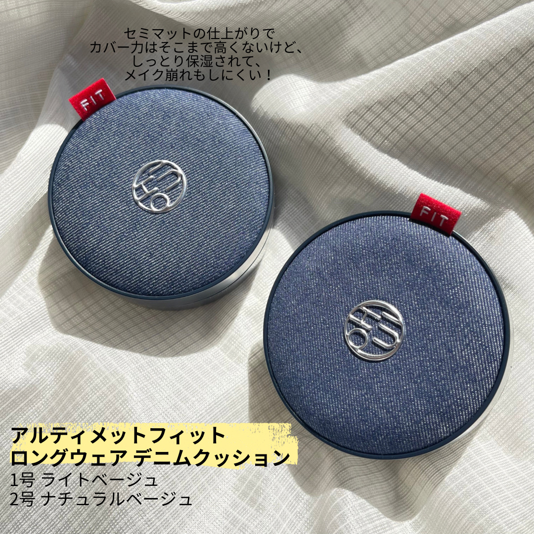 デニムのパケが可愛すぎ😍 デニムのように自分になじむということから、デニムクッションなんだそう👖 軽めの使い心地なのにピタッと肌に密着してくれて、厚塗り感が出ないのが良いところ🌸 白浮きしづらい肌なじみの良いカラーなのがポイント🌟