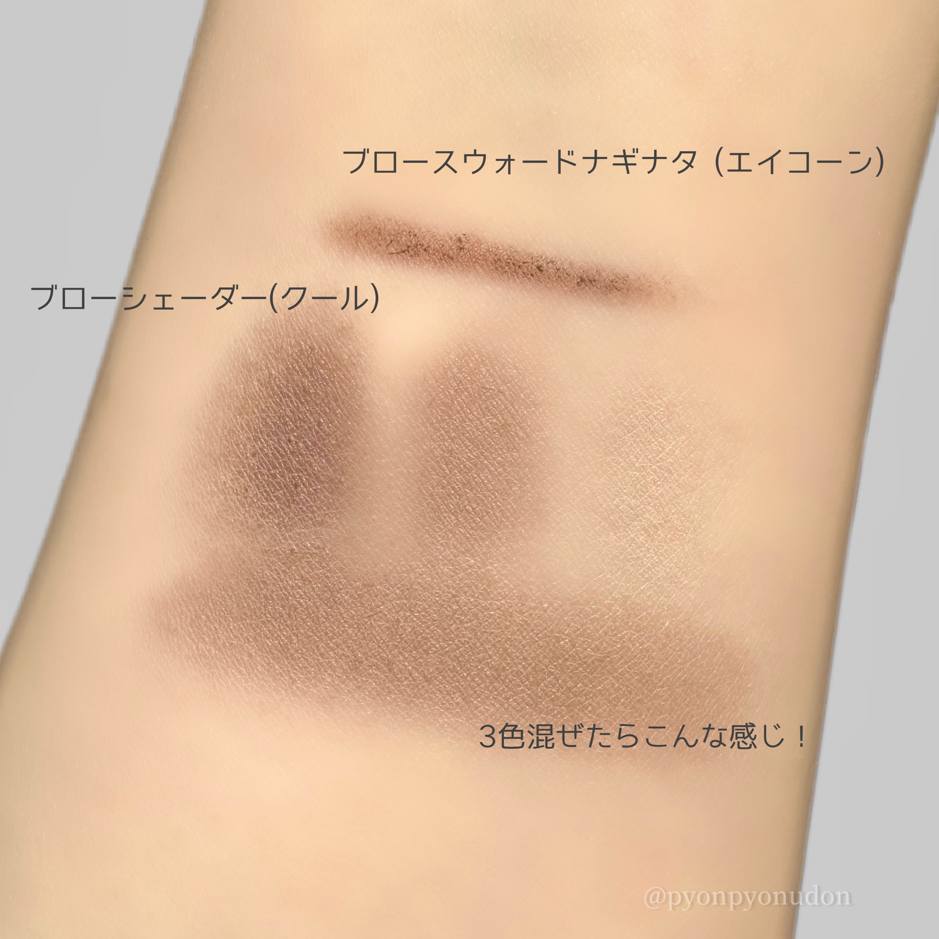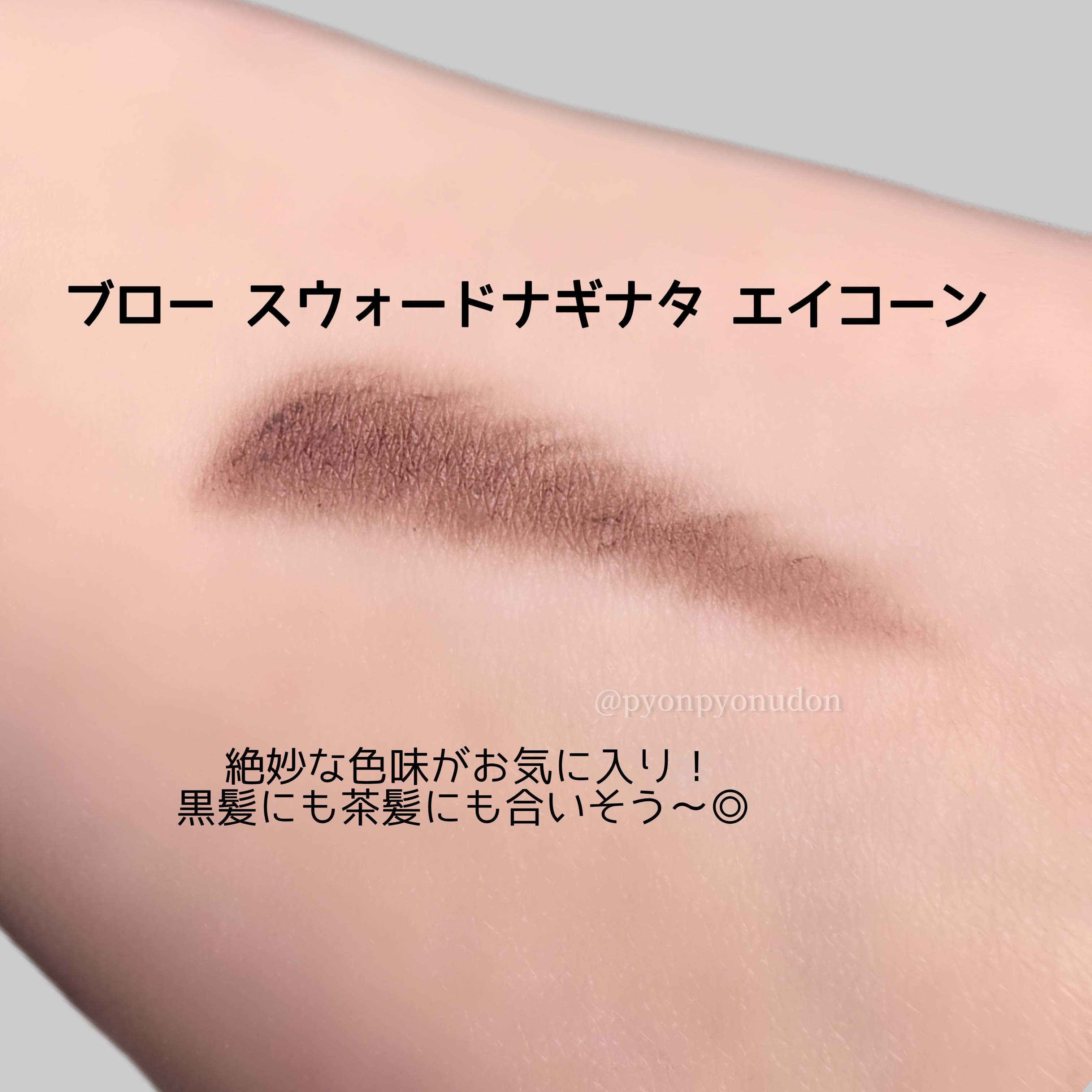 ナギナタはずーっと気になっていて、鉛筆タイプと繰り出し式の2種類ある内、私は繰り出しタイプにしました✨ カラーはエイコーンで、こちらは黄味赤味どちらもないので1番使いやすいカラーだとBAさんにオススメされました🍀 アンズピンクは限定色で、スウォッチでは赤に近いようなピンクでしたが眉毛に塗ると不思議なくらい馴染む!
