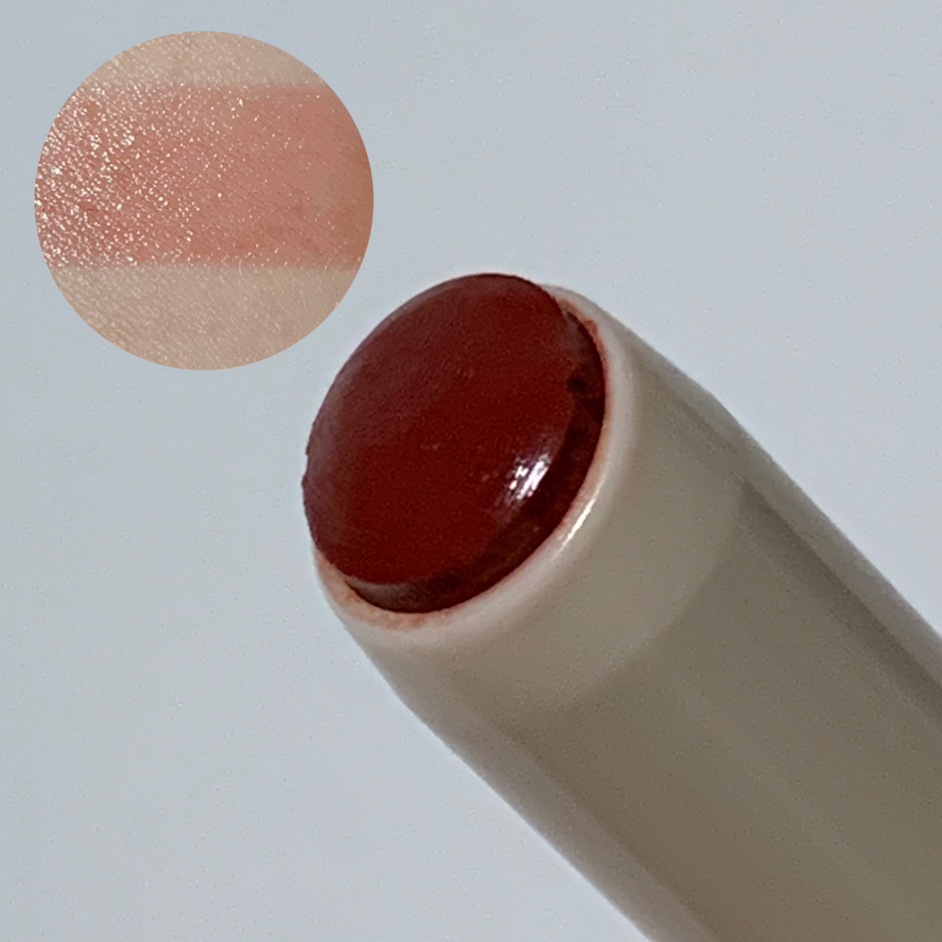色がシックでカッコいい😍 暗めのブラウンメイクに取り入れるのも 良さそう。 リップクリームのような使い心地で 保湿力は十分👍 もうツヤツヤです。 しかし、色もちしないのがとても残念。 ティッシュオフしないと マスクについてしまうけど、 色もほとんど取れてしまう。。。😢