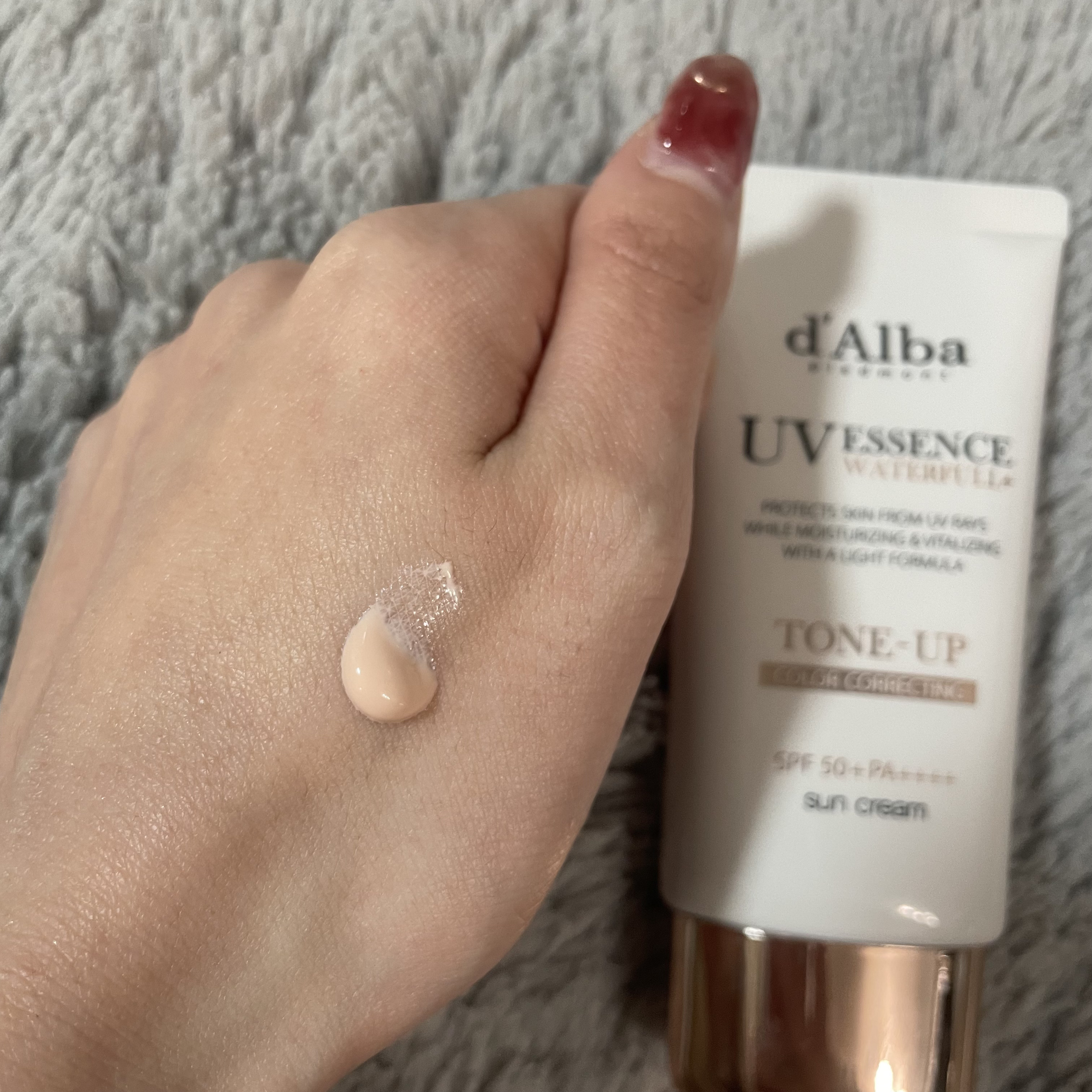 ダルバ ウォータフル トーンアップ サンクリーム パープルはかなりしっかりめにトーンアップしてくれます◎ カラーはブルベ向きの色です! ダルバ ウォータフル トーンアップ サンクリーム ピンクはイエベ、ブルベどちらもOKなので何を買うか悩んでいる方にはこれがおすすめ! ダルバ ウォータフル エッセンス サンクリームは下地としてではなく日焼け止めとして使用します。無色なので首などの全身塗れます!