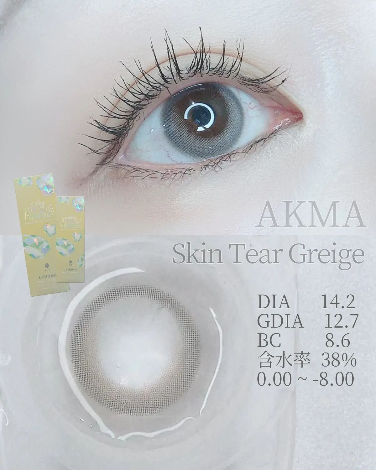開けた時、発色が派手すぎるかも、、?って思ったけどつけたら可愛すぎた🥺 クリアな発色の三日月が魅力の透明感爆誕カラコン🤍 フィット感も好きだし、乾きづらいのがお気に入り🤭💫