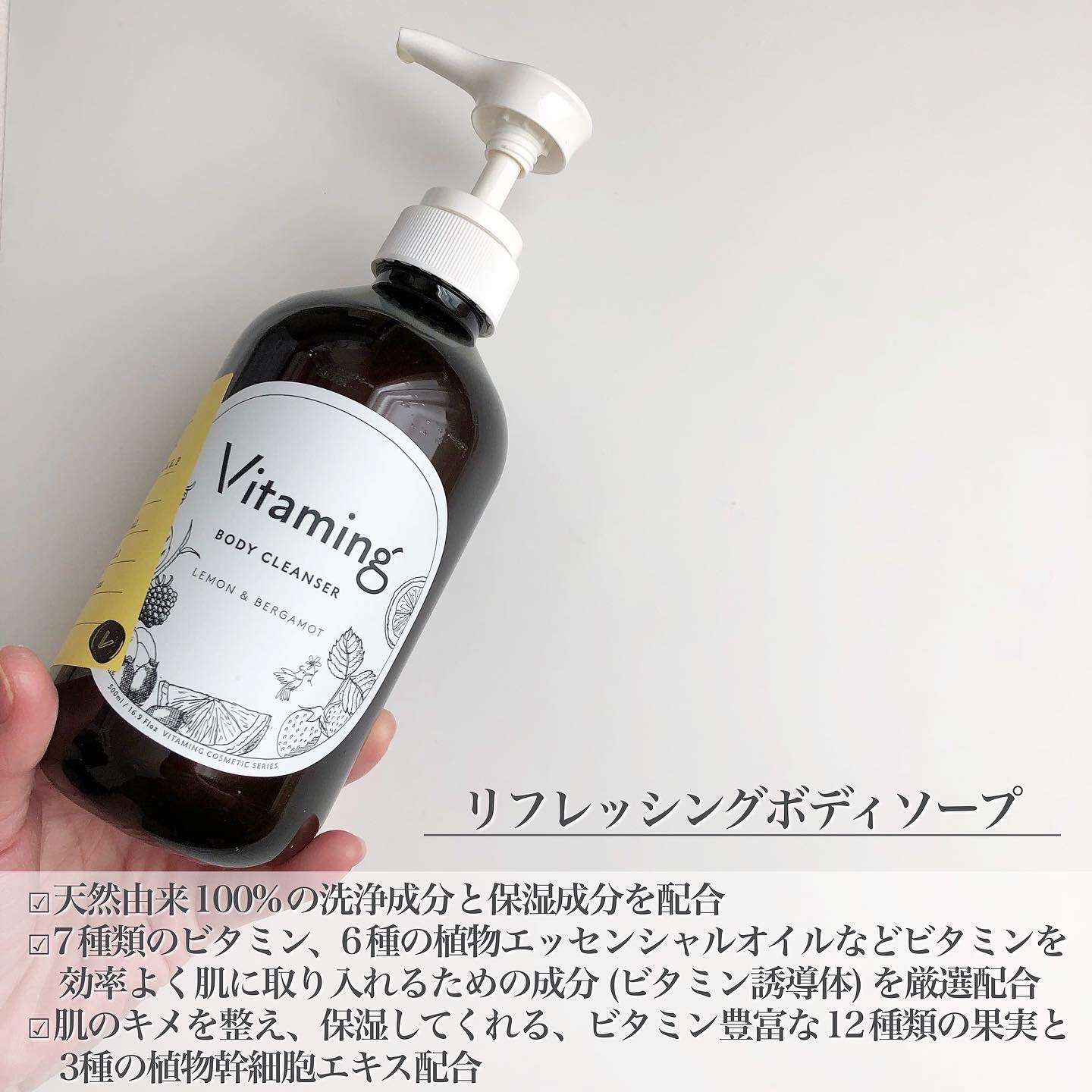 商品詳細情報Vitaming リフレッシングボディソープ(レモン&ベルガモットの香り)