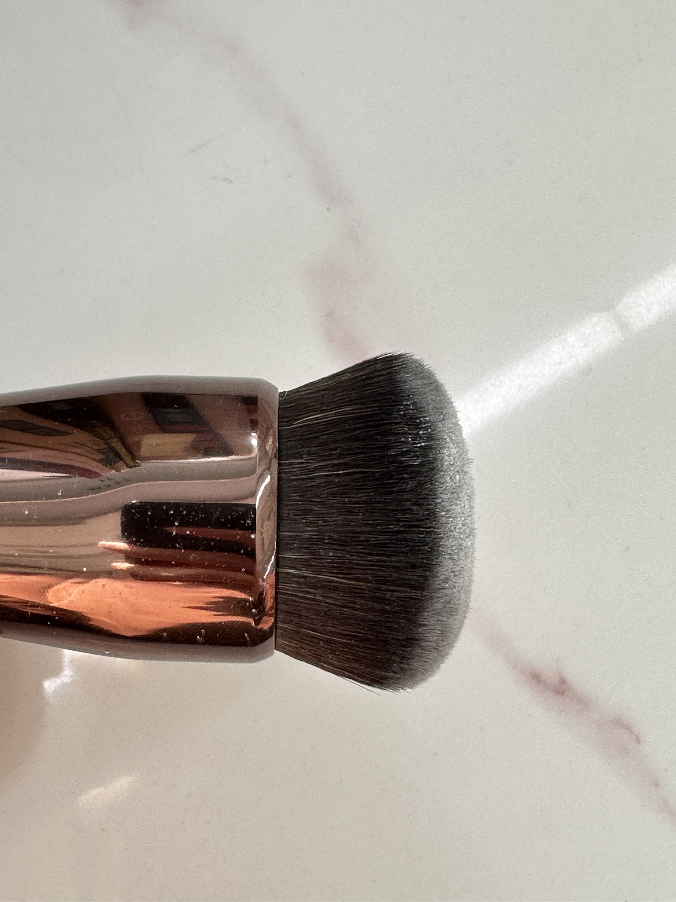 ずっとスポンジ派だった私。初めて使ってみたら、スポンジより簡単! しかもスポンジよりムラなくキレイに塗れる、崩れにくい、毛穴かくれる、自然な艶がでる!! 毛量も半端ないし、この丸くて大きめのが時短にもなる! 大きいといっても細い所もちゃんと塗れる!! そして持ちやすい。使いやすい。 高級感ある見た目もタイプ。 もう満足すぎて他のブラシと比較する必要ない!