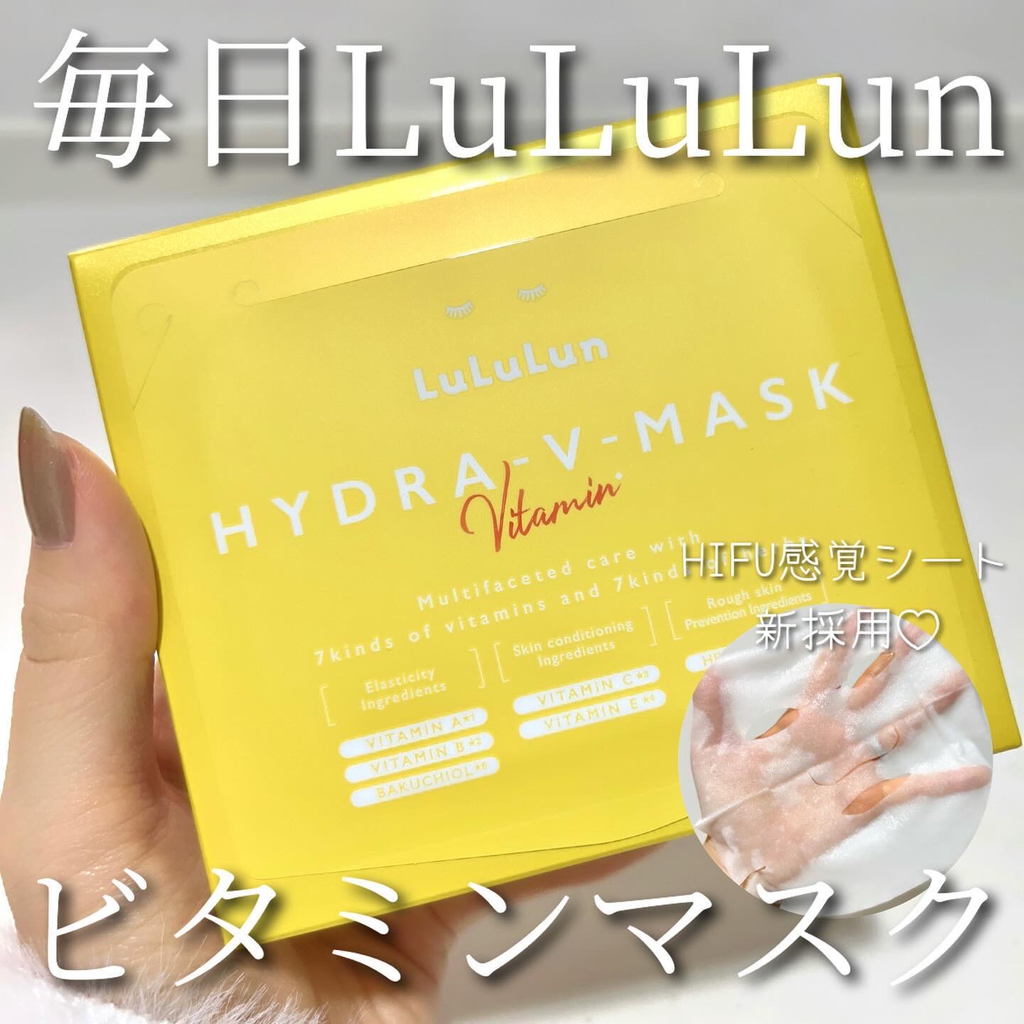 ルルルンのモニター企画に参加していますルルルンハイドラVマスク7枚入770円(税込)化粧水タイプのシートマスクです。ルルルンのシートは縦にも横にも伸びるのでホントにピタッと密着してくれるのが凄くいい♡ハイドラVマスクはHIFU(ハイフ)感覚シ...