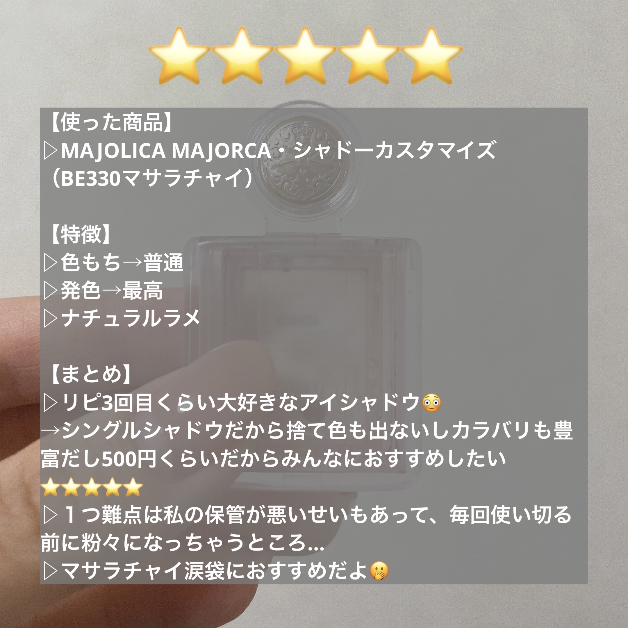 | 単色アイシャドウランキング第7位 | くすみ感と発色がちょうど良すぎるベースアイシャドウ🫧 これは全メイクのベースとして使いたい…… | 詳細を見る | |