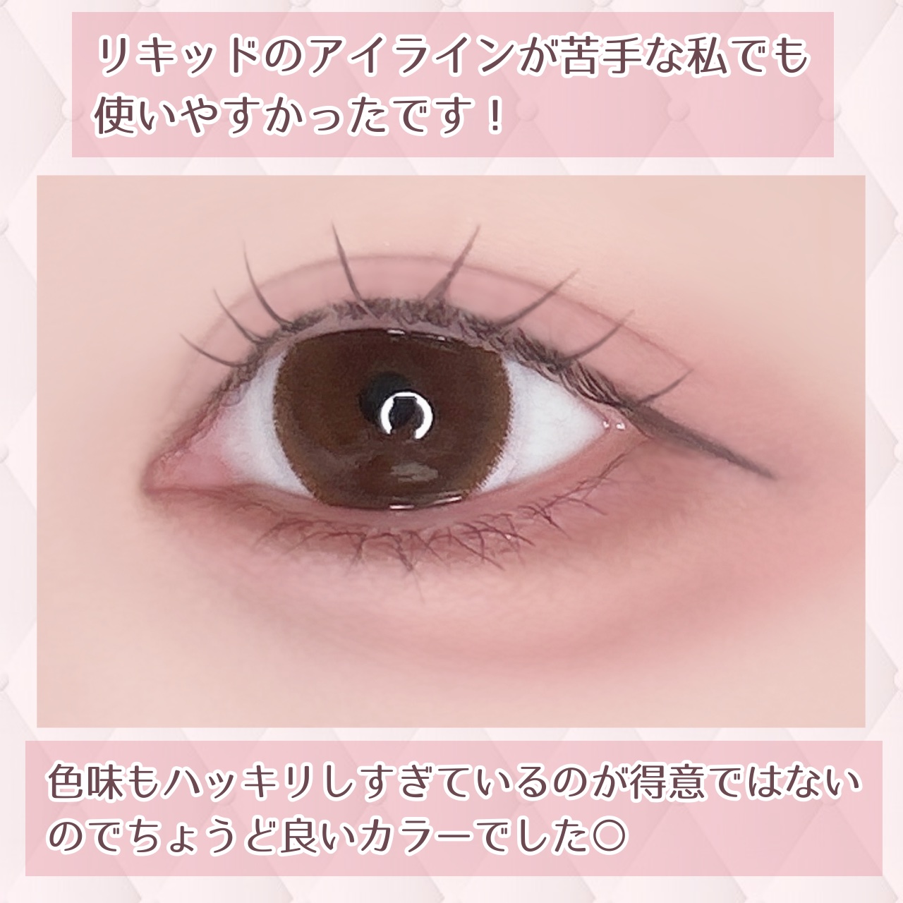 - 筆先までずっとなめらか、目尻で感動するリキッドアイライナー。 必要な量が肌にのる新設計で、まぶたの上をすべるような、滑らかな描き心地。しなやかでコシのある筆が、筆圧のコントロールを容易にし、太いラインも細いラインも思い通りに仕上げます。水、汗、涙に強いウォータープルーフタイプなのに、通常洗顔で簡単オフ。肌に色素が残らない顔料を使用。5種類の美容液成分を従来品の200%配合し、メイクしながら目元ケアまで。 ●ブラウンブラック ※2020年9月12日 バラエティショップ先行発売 ●漆黒ブラック ※2020年12月頃発売予定 ●ナチュラルブラウン ※2020年12月頃発売予定 ●シフォンブラウン 「毎日メイクに透明感と抜け感」 ブラウンでも、グレーでも、ベージュでもないニュアンスカラー。 自然な印影で素の目元を際立て、頑張りすぎない、ふんわりとした目元に。 ●アプリコットブラウン 「じゅわっと血色感。 肌に馴染むおしゃれカラー」 温かみのあるアプリコットがじゅわっと滲む血色感を目元に演出。 肌馴染みが良いので、カラーライナーに抵抗がある方もブラウンの延長線上で楽しめる、使いやすい色味です。 ”ちょっとオシャレ”な空気感を演出するカラー。 ●ピンクショコラ アイライナー 「ピンクが溶け込む濃厚ブラウン」 肌馴染みが良く、目元にじんわり血色感をプラス。 さりげなく女性らしさが加速するようなカラー。 ●ピスタチオラテ (2022年7月29日(金)発売) 「“目尻”に抜け感アクセント」 肌に馴染むのに映える絶妙なグリーン。 トレンドカラーに“くすみ”と“抜け感”をプラスしたまろやかな発色。 ●マスタードブラウン 「“イエロー”が揺れる、大人の洒落色」 (2022年7月29日(金)発売) まるで太陽のような暖かさを感じる新しいブラウン。 ほんのり感じるイエローでメイクが一気に垢抜ける稀有な色。 ●シフォンピンク(2023年2月10日発売) 「ふんわり柔らか"まろみピンク"」 甘くなりすぎない青みニュアンスで目元の透明感UP。 目元を引き締め、ピンクメイクにありがちな腫れぼったさを解消。 ●ミルクカプチーノ(2023年4月21日発売) まろやかな深みの“優しい締め色” どんなメイクにも合わせやすいカラー。 自然な陰影でさりげなく目幅を拡張します。 ●グレーカシミア(2023年10月1日発売) ブラウンがほんのり溶け込んだ、暖色グレー まろやかな発色で、パーソナルカラーを問わず肌に馴染む 目元の陰影になりすまし、抜け感と目力を欲張りに叶える ●ダークフィグ(2024年6月1日発売) するする”なめらか。描きやすいのに、落ちにくい。 クッキリ可愛いほの甘ダークブラウン ●ピーチモカ(2024年8月1日発売) ふわっと自然に盛れる“桃色ブラウン” ほんのり血色感で目元にうるみ感を演出 ●スターダストブラウン(2024年12月11日発売) キラッと繊細に輝く''星屑ブラウン'' 透け感のあるダークブラウンの色味とラメの輝きが、目元に艶のある立体感を演出 ●チャコールモカ(2025年4月10日発売) 目元を締める''深みグレージュ'' 黄みや赤みに偏りすぎない絶妙な色設計で、自然に目元を強調