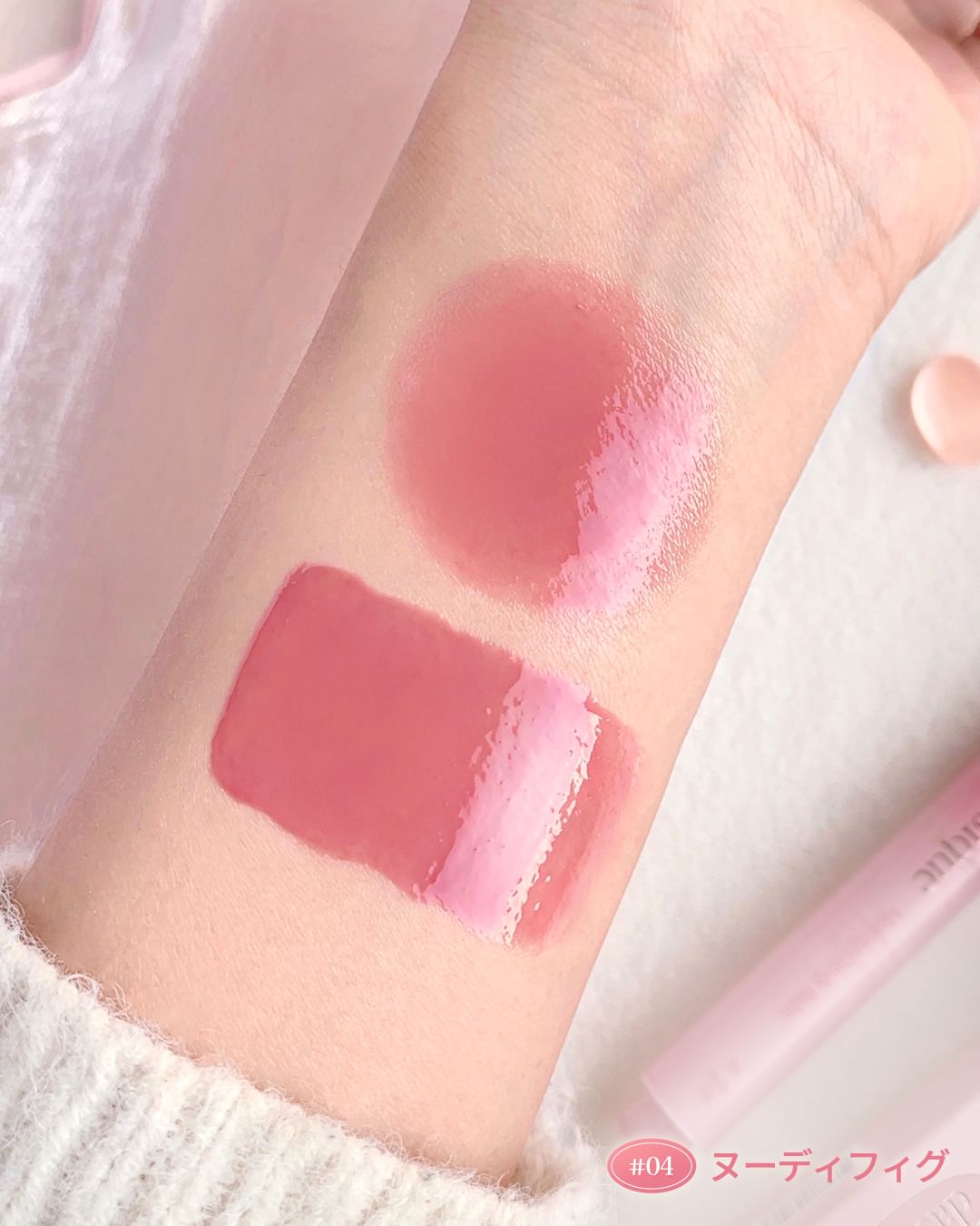 - <01 ジェントルピーチ> 水添ポリイソブテン、テトラ(ヒドロキシステアリン酸/イソステアリン酸)ジペンタエリスリチル、ヒドロキシステアリン酸エチルヘキシル、トリメリト酸トリトリデシル、水添ロジン酸メチル、ダイマージリノール酸(フィトステリル/イソステアリル/セチル/ステアリル/ベヘニル)、ジ安息香酸PG、合成ワックス、リンゴ酸ジイソステアリル、パラフィン、マカデミアナッツ脂肪酸フィトステリル、シリル化シリカ、イソステアリン酸ソルビタン、(VP/ヘキサデセン)コポリマー、酸化チタン、パルミチン酸デキストリン、マイクロクリスタリンワックス、トリイソステアリン酸ポリグリセリル-2、酸化鉄、赤202、黄5、ジイソステアリン酸ポリグリセリル-2、水、アルガニアスピノサ核油、ホホバ種子油、BG、サトウカエデエキス、フェノキシエタノール、アサイヤシ果実エキス、フラガリアチロエンシス果実エキス、クコ果実エキス、クロミグワ果実エキス、クロフサスグリ果実エキス、セイヨウヤブイチゴ果実エキス、キイチゴエキス、ローブッシュブルーベリー果実エキス、クランベリー果実エキス、ビルベリー果実エキス、エチルヘキシルグリセリン <02 アップルシナモン> 水添ポリイソブテン、テトラ(ヒドロキシステアリン酸/イソステアリン酸)ジペンタエリスリチル、ヒドロキシステアリン酸エチルヘキシル、トリメリト酸トリトリデシル、水添ロジン酸メチル、ダイマージリノール酸(フィトステリル/イソステアリル/セチル/ステアリル/ベヘニル)、ジ安息香酸PG、合成ワックス、パラフィン、リンゴ酸ジイソステアリル、マカデミアナッツ脂肪酸フィトステリル、シリル化シリカ、イソステアリン酸ソルビタン、(VP/ヘキサデセン)コポリマー、トリイソステアリン酸ポリグリセリル-2、パルミチン酸デキストリン、酸化鉄、マイクロクリスタリンワックス、酸化チタン、赤202、ジイソステアリン酸ポリグリセリル-2、黄5、水、アルガニアスピノサ核油、ホホバ種子油、BG、サトウカエデエキス、フェノキシエタノール、アサイヤシ果実エキス、フラガリアチロエンシス果実エキス、クコ果実エキス、クロミグワ果実エキス、クロフサスグリ果実エキス、セイヨウヤブイチゴ果実エキス、キイチゴエキス、ローブッシュブルーベリー果実エキス、クランベリー果実エキス、ビルベリー果実エキス、エチルヘキシルグリセリン <03 ローズミルクティー> 水添ポリイソブテン、テトラ(ヒドロキシステアリン酸/イソステアリン酸)ジペンタエリスリチル、ヒドロキシステアリン酸エチルヘキシル、トリメリト酸トリトリデシル、水添ロジン酸メチル、ダイマージリノール酸(フィトステリル/イソステアリル/セチル/ステアリル/ベヘニル)、ジ安息香酸PG、合成ワックス、リンゴ酸ジイソステアリル、パラフィン、マカデミアナッツ脂肪酸フィトステリル、シリル化シリカ、イソステアリン酸ソルビタン、(VP/ヘキサデセン)コポリマー、酸化チタン、トリイソステアリン酸ポリグリセリル-2、パルミチン酸デキストリン、マイクロクリスタリンワックス、酸化鉄、黄4、赤202、ジイソステアリン酸ポリグリセリル-2、青1、水、アルガニアスピノサ核油、ホホバ種子油、BG、サトウカエデエキス、フェノキシエタノール、アサイヤシ果実エキス、フラガリアチロエンシス果実エキス、クコ果実エキス、クロミグワ果実エキス、クロフサスグリ果実エキス、セイヨウヤブイチゴ果実エキス、キイチゴエキス、ローブッシュブルーベリー果実エキス、クランベリー果実エキス、ビルベリー果実エキス、エチルヘキシルグリセリン <04 ヌーディーフィグ> 水添ポリイソブテン、テトラ(ヒドロキシステアリン酸/イソステアリン酸)ジペンタエリスリチル、ヒドロキシステアリン酸エチルヘキシル、トリメリト酸トリトリデシル、水添ロジン酸メチル、ダイマージリノール酸(フィトステリル/イソステアリル/セチル/ステアリル/ベヘニル)、ジ安息香酸PG、合成ワックス、リンゴ酸ジイソステアリル、パラフィン、マカデミアナッツ脂肪酸フィトステリル、シリル化シリカ、イソステアリン酸ソルビタン、(VP/ヘキサデセン)コポリマー、酸化チタン、パルミチン酸デキストリン、マイクロクリスタリンワックス、トリイソステアリン酸ポリグリセリル-2、酸化鉄、黄4、赤202、ジイソステアリン酸ポリグリセリル-2、水、アルガニアスピノサ核油、ホホバ種子油、BG、サトウカエデエキス、フェノキシエタノール、アサイヤシ果実エキス、フラガリアチロエンシス果実エキス、クコ果実エキス、クロミグワ果実エキス、クロフサスグリ果実エキス、セイヨウヤブイチゴ果実エキス、キイチゴエキス、ローブッシュブルーベリー果実エキス、クランベリー果実エキス、ビルベリー果実エキス、エチルヘキシルグリセリン <05 シュガープラム> 水添ポリイソブテン、テトラ(ヒドロキシステアリン酸/イソステアリン酸)ジペンタエリスリチル、ヒドロキシステアリン酸