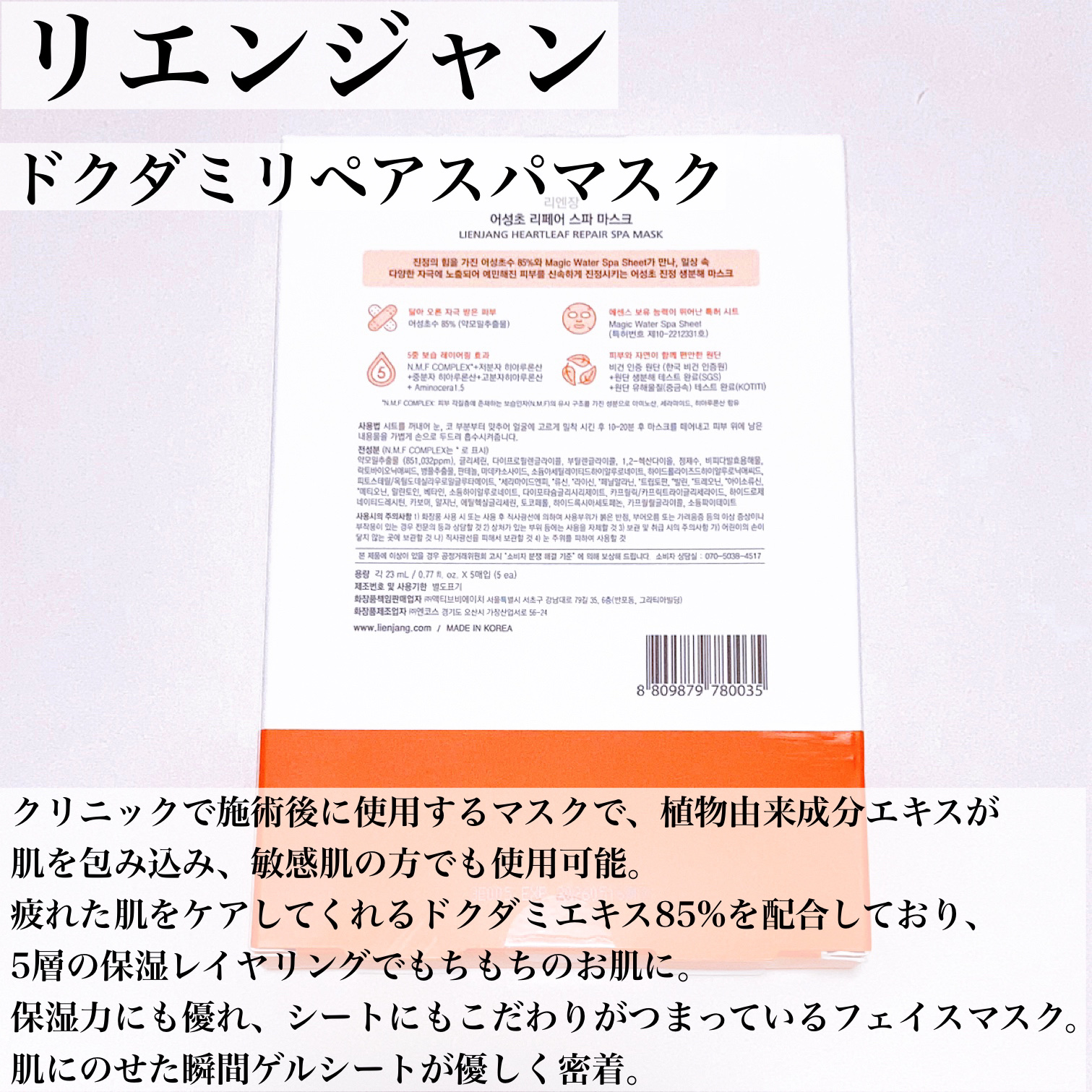 LIENJANG(@lienjang_cosme.jp)様からドクダミリペアスパマスクを頂きました⸜(*ˊᗜˋ*)⸝︎💕︎︎💕︎``~୨୧·``~୨୧·ドクダミリペアスパマスク🧡これ凄く引き締め効果がありました✨️(ㅅ´˘`)ゲル状のスパ...