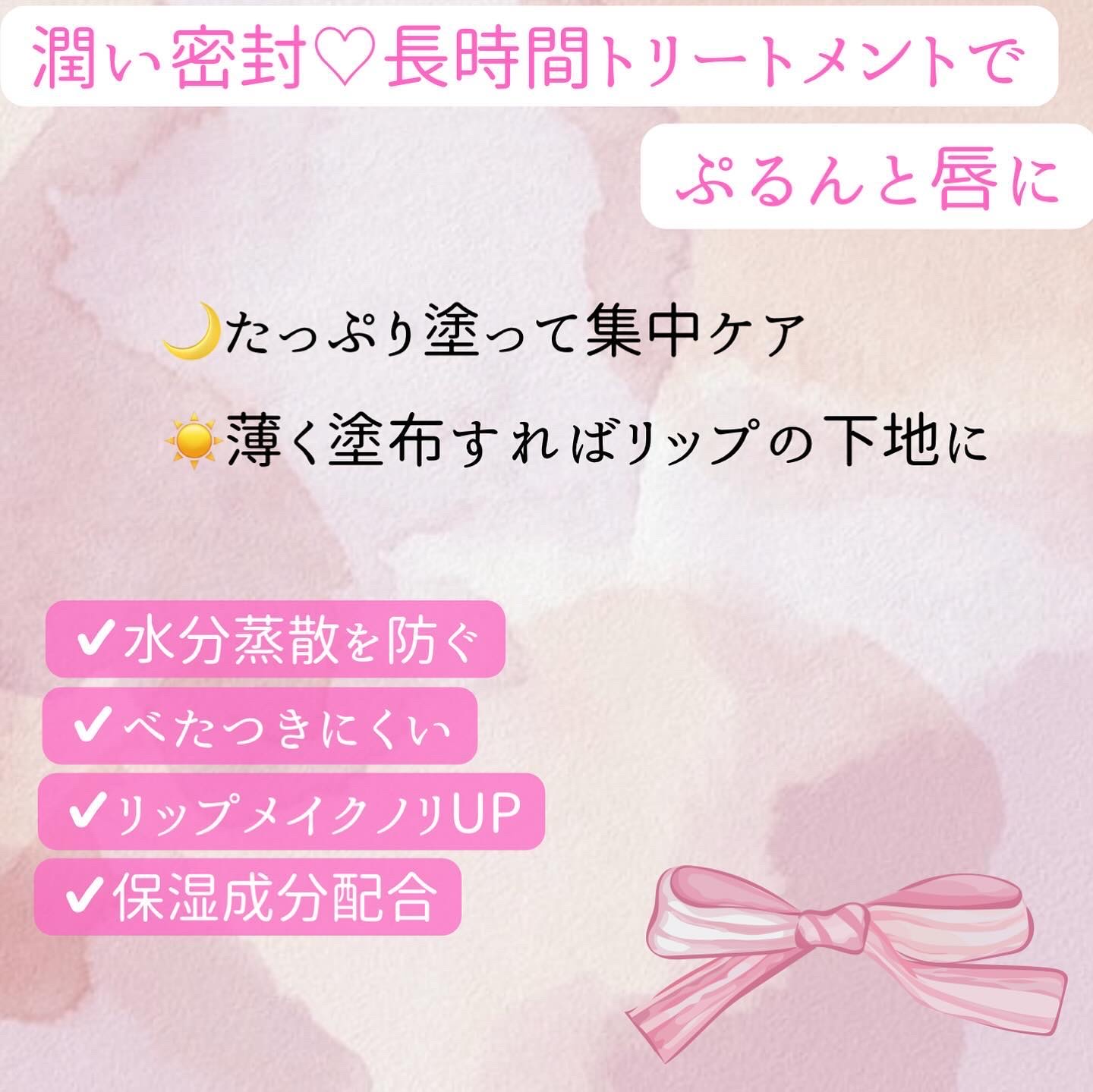 - 寝ている間に集中保湿ケア ぷるんと唇に整えるリップマスク とろけるなめらかな塗り心地でベタつきにくく、快適にトリートメント✨ たっぷり塗って夜の集中ケアに🌙 うすく塗って日中のリップ下地に🌞 無香料