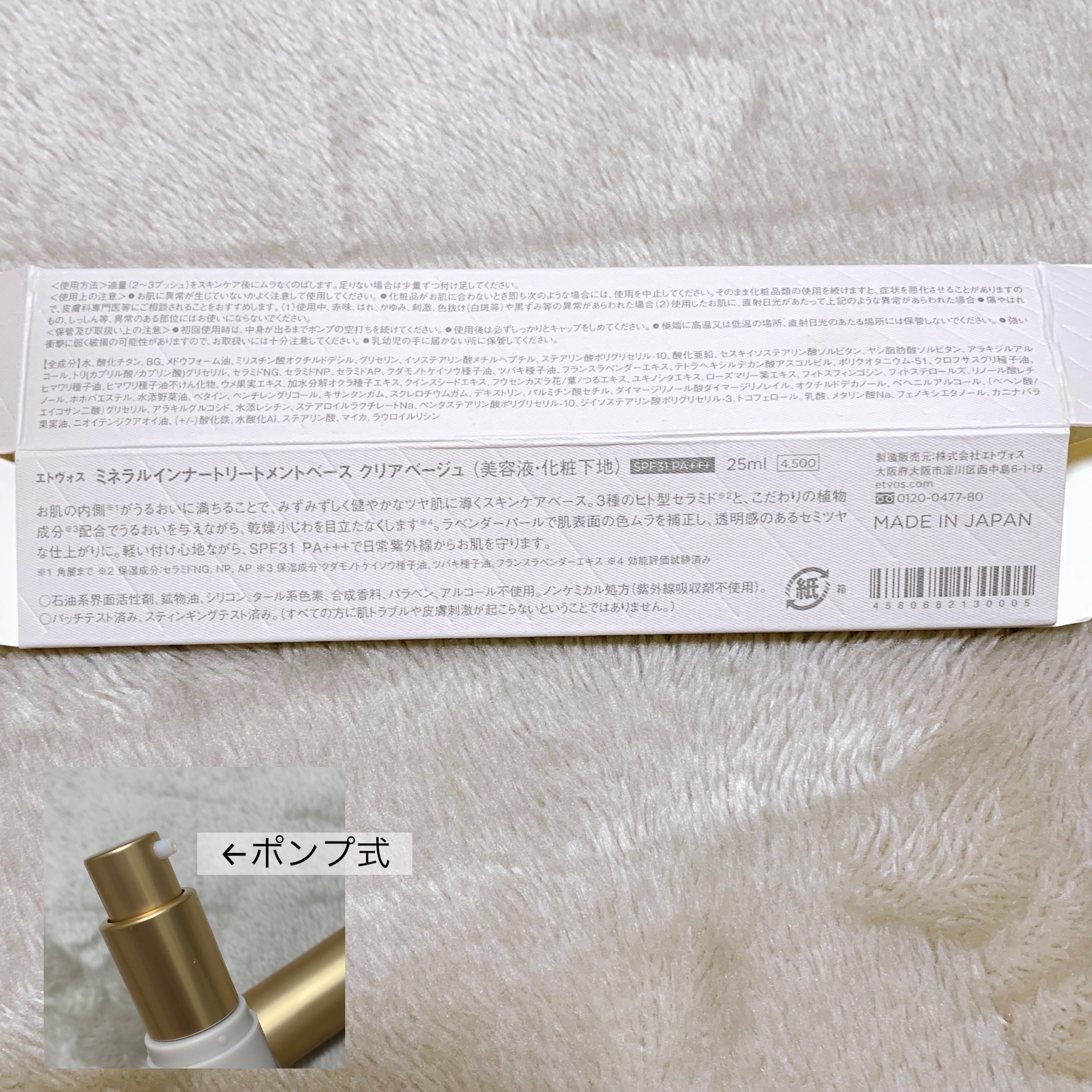 エトヴォスの人気下地の新色、ピンクベージュ👼🏻✨ETVOS(@etvos_jp)様よりいただきました🙇🏻♀️🌟ETVOS(エトヴォス)ミネラルインナートリートメントベース#ピンクベージュうるおい溢れるツヤ肌に導いてくれる、素肌に溶け込むスキ...